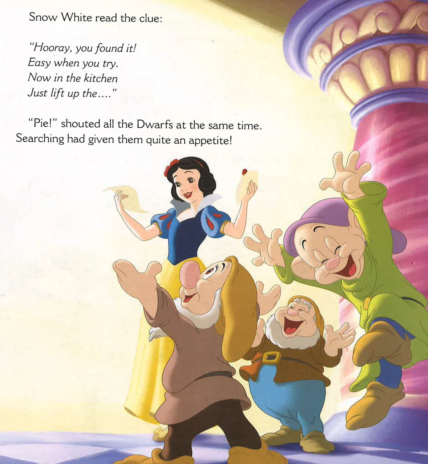 At the end of the treasure hunt, she and the Seven Dwarfs find a special gift.