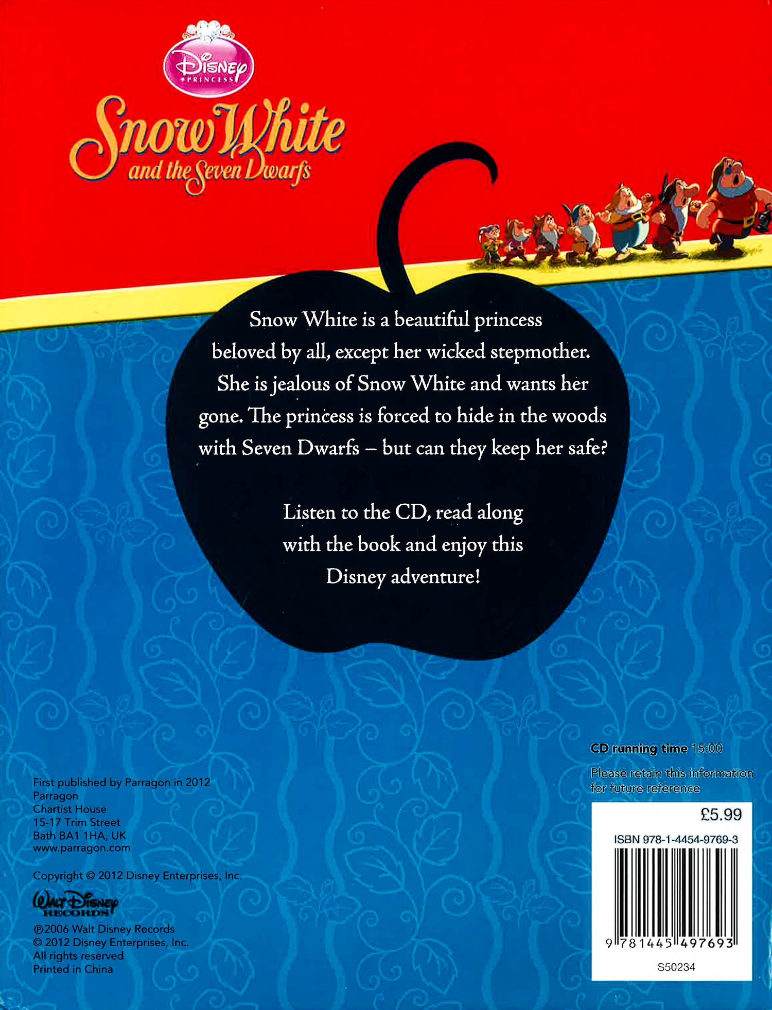 Snow White is a beautiful princess beloved by all, except her wicked stepmother.She is jealous of Snow White and wants her gone.The princess is forced to hide in the woods with Seven Dwarfs but can they keep her safe? Listen to the CD ,read along with the book and enjoy this Disney adventure!