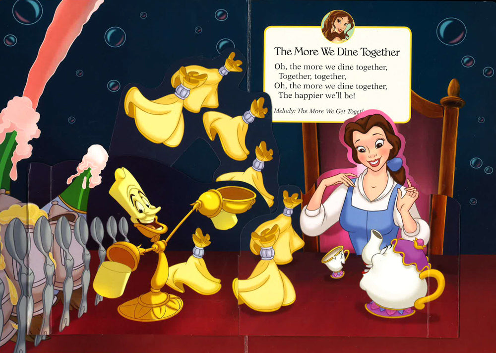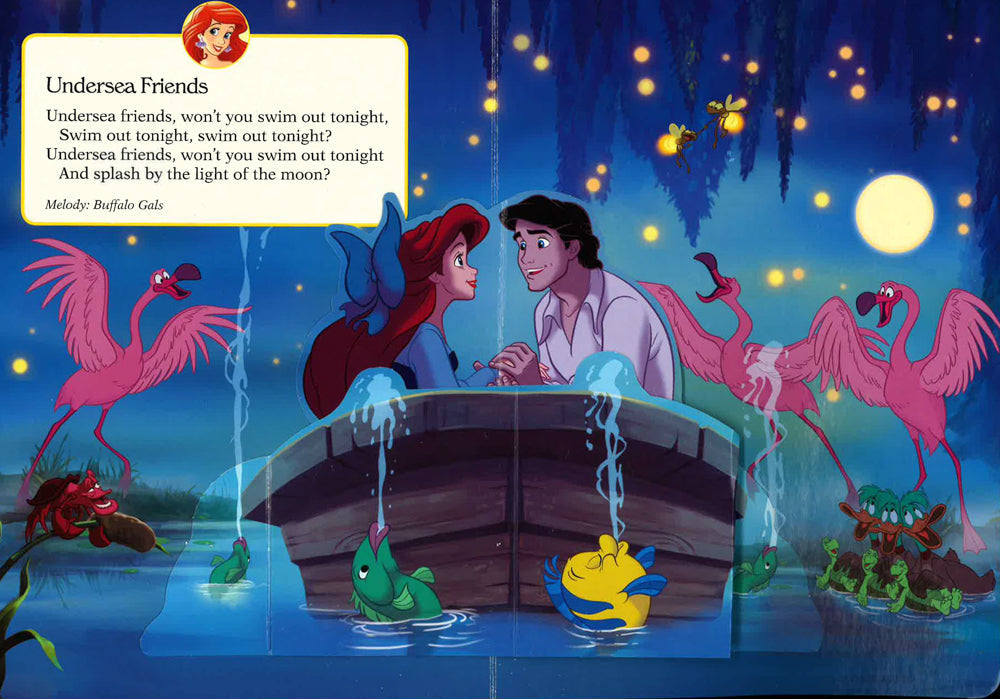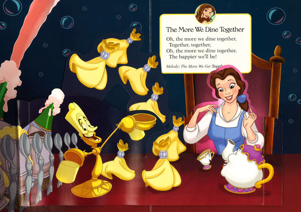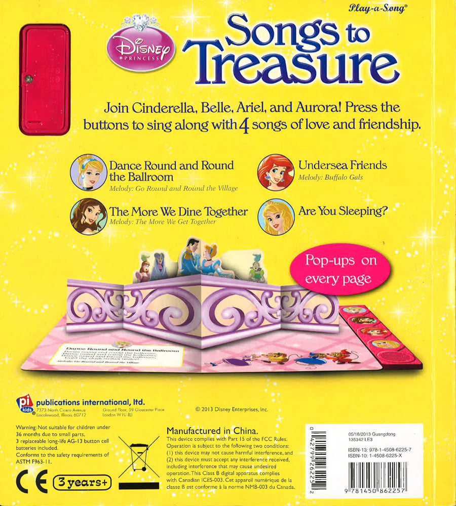 Your favorite Disney Princess will spring to life with every page you turn! Book features engaging pop-up art on ever spread, 4 favorite melodies with lyrics to sing along, 4 triggers and 4 song spreads. 3 AG-13 button cell batteries are included.