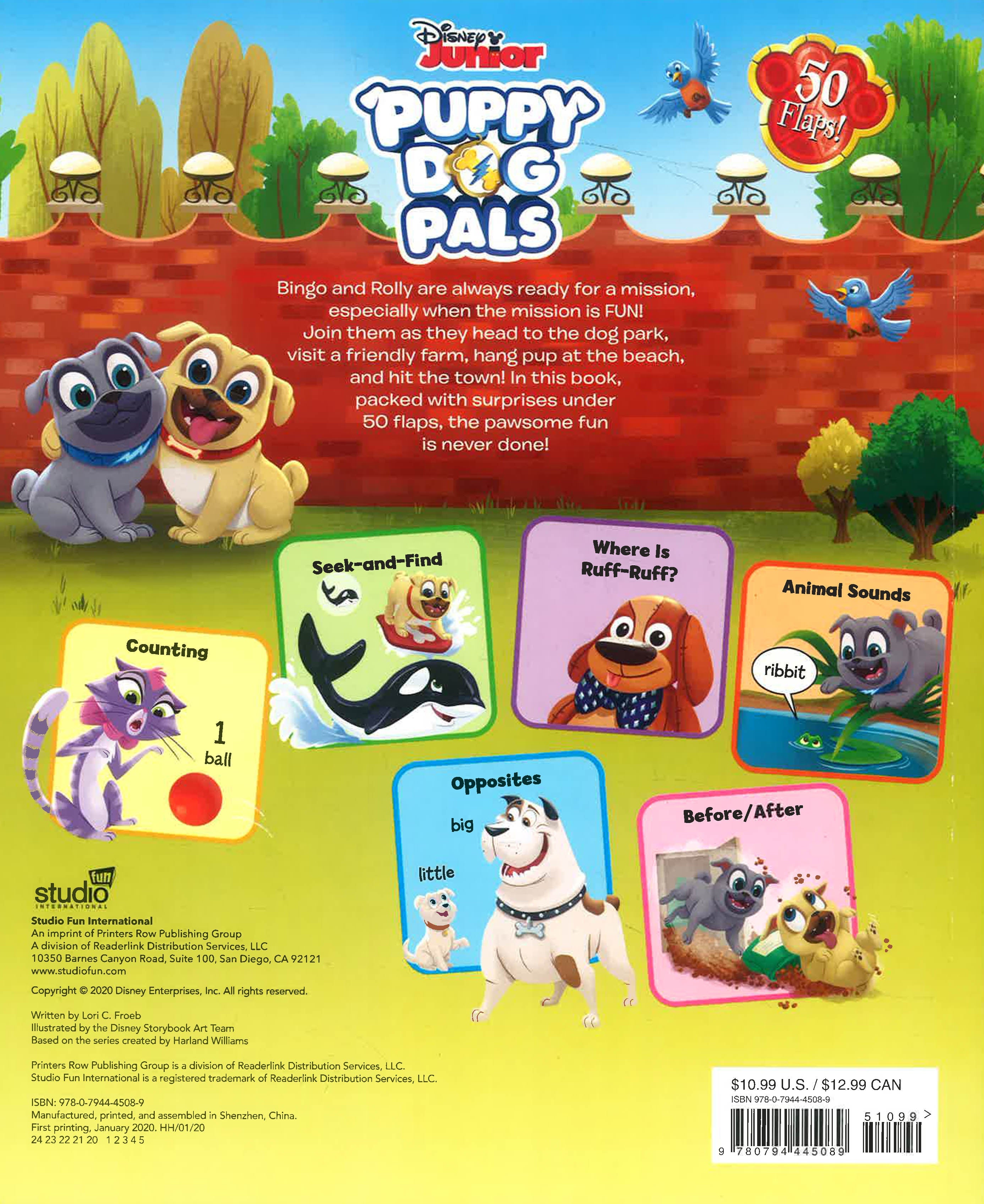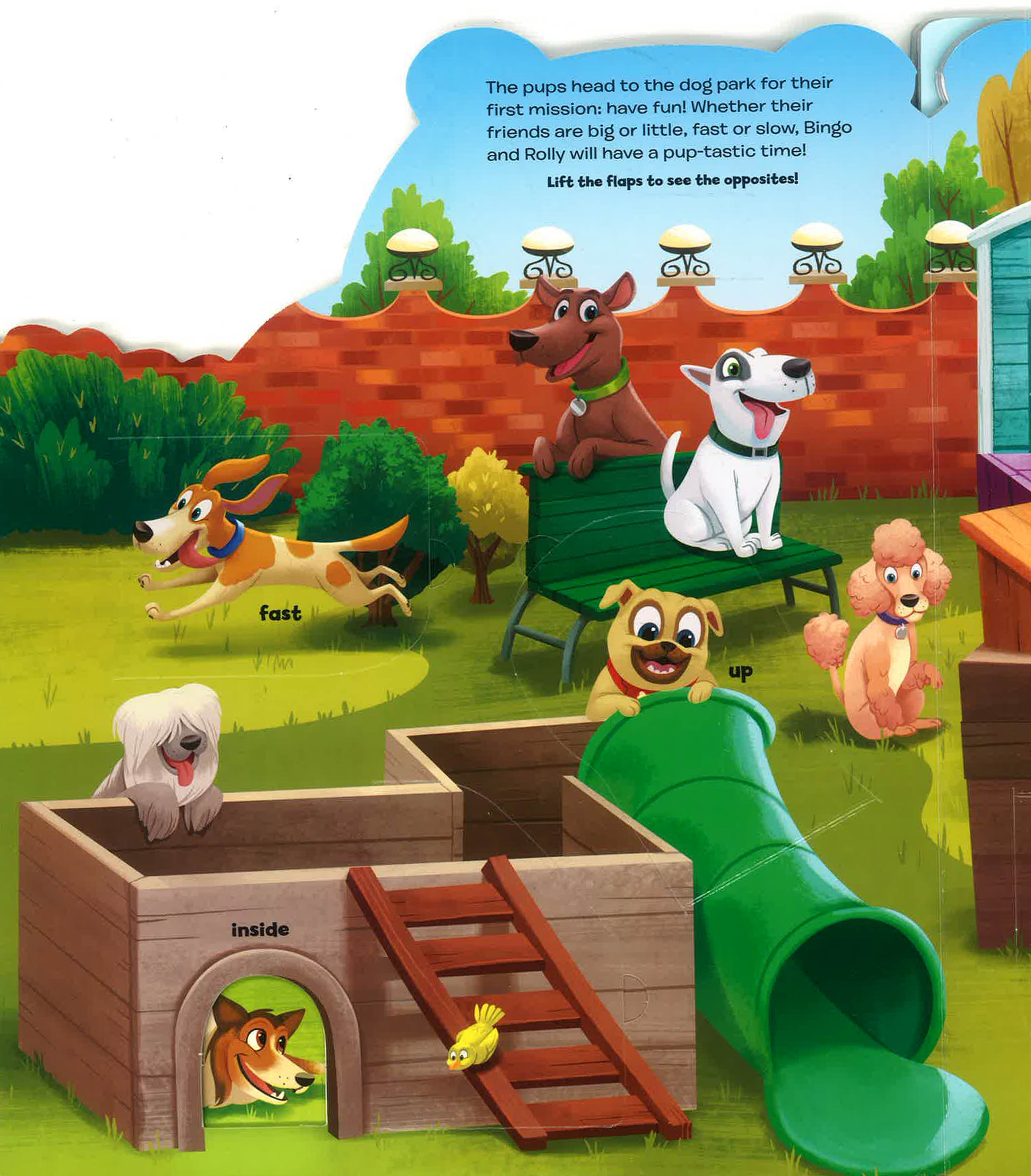 Bingo and Rolly are always ready for a mission—especially when the mission is FUN! Join them as they head to the dog park, visit a friendly farm, hang pup at the beach, and hit the town! Packed with surprises under more than 50 flaps, the pawsome fun in this book is never done!