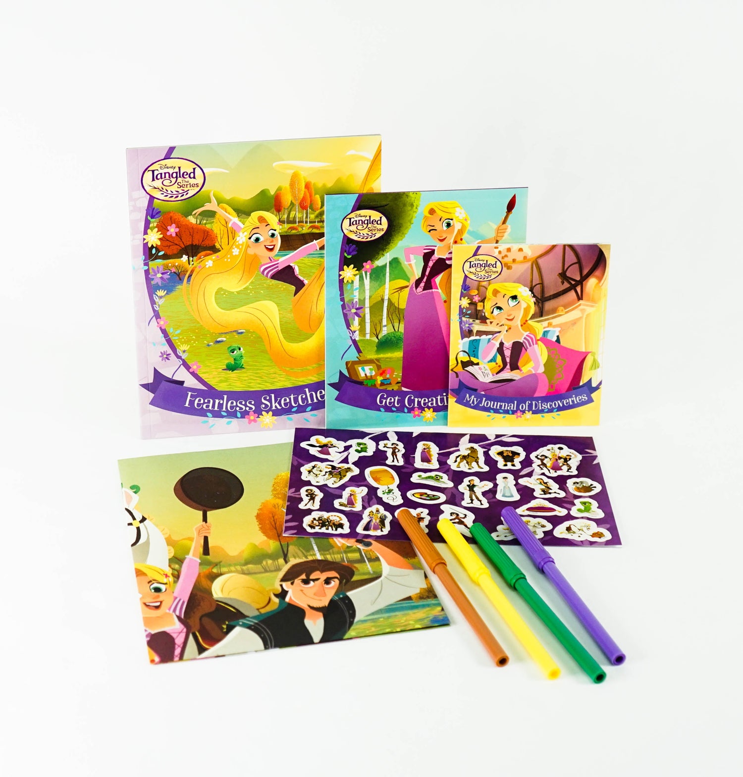 Join Rapunzel on her exciting journey as she explores life outside her tower with Disney Tangled The Series Happy Tin! Create your own unique drawing journal, be inspired to start a diary and colour the adventures of Rapunzel, Pascal, Flynn, Maximus and Cassandra in Corona and beyond. It's time for a new chapter!