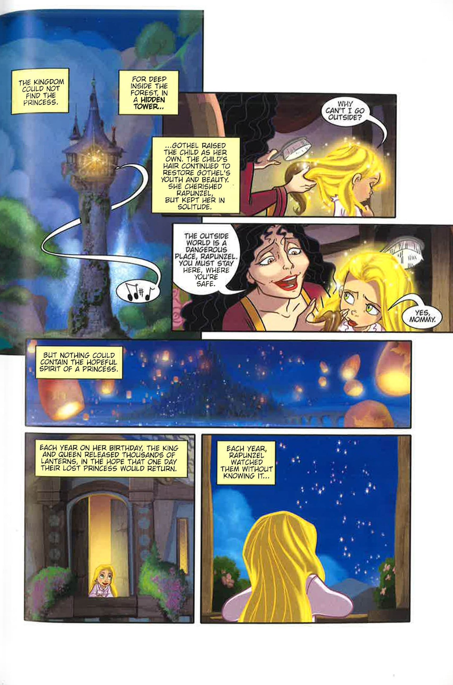 When the kingdom's most wanted and most charming bandit, Flynn Rider, hides out in a mysterious tower, he's taken hostage by Rapunzel, a beautiful and feisty tower-bound teen with seventy feet of magical, golden hair. Flynn's curious captor, who's looking for her ticket out of the tower where she's been locked away for years, strikes a deal with the handsome thief, and the unlikely duo sets off on an action-packed escapade, complete with a super-cop horse (Maximus), an overprotective chameleon (Pascal), and a gruff gang of pub thugs.