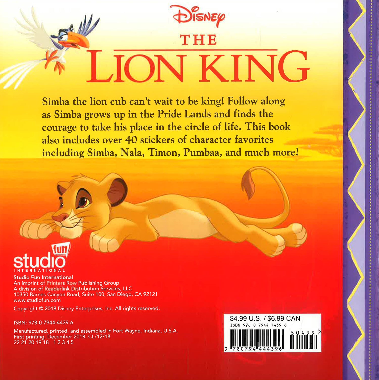 Follow the beloved cub Simba as he grows up to become the lion king in the Disney The Lion King storybook. This storybook is a retelling of the award-winning animated film that follows Simba as he defeats his evil uncle Scar and tries to gain his rightful throne at Pride Rock. After reading the storybook, children can play with the 40+ stickers of character favorites such as Simba, Nala, Timon, Pumbaa, and more!