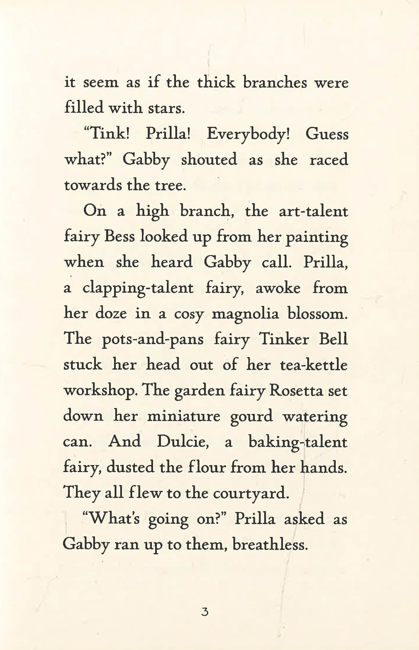 When Gabby is asked to be the flower girl at her babysitter's wedding, she travels to Never Land to tell the fairies! No fairy has ever been to a Clumsy's wedding and they want to know everything. Gabby wishes they could come with her to see it, but her big sister, Mia, says no. Bess, an art-talent fairy, wants to paint a picture of the wedding, but she can't imagine what it would be like. That's when Prilla suggests Bess could travel through the hole between worlds and see the wedding for herself! One little fairy couldn't cause too much trouble - right?
