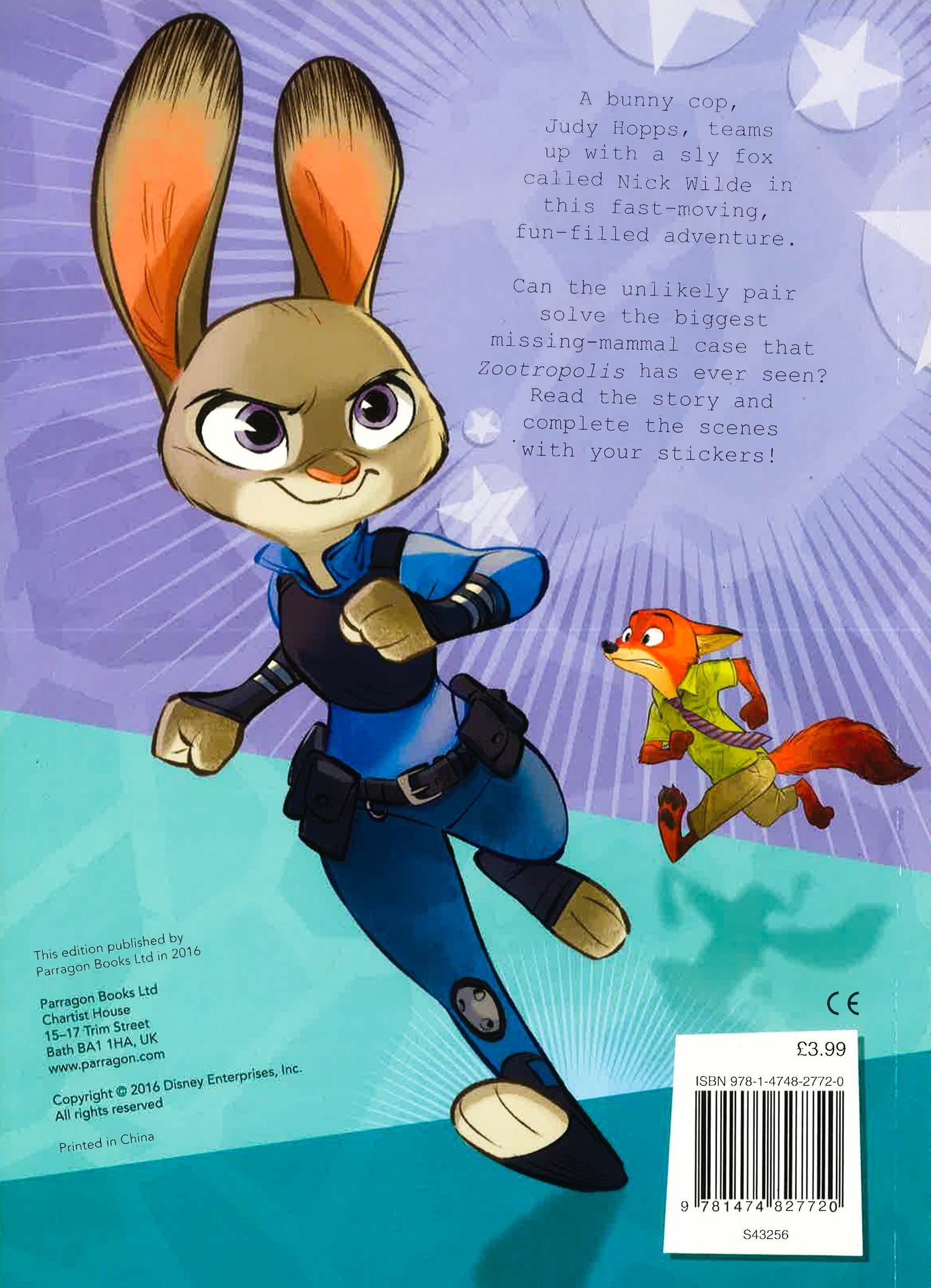 A bunny cop, Judy Hopps, teams up with a sly fox called Nick Wilde in this fast-moving, fun-filled adventure. Can the unlikely pair solve the biggest missing-mammal case Zootropolis has ever seen? Read the story and complete the scenes with the included stickers to find out! Disney Zootropolis Sticker Scenes includes over 40 stickers.