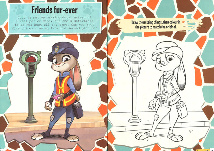 Join Judy Hopps on a chase through town, check out Nick Wilde's character file, crack the code of the missing mammals, and lots more in this fun activity book! Plus, use these awesome Judy and Nick erasers.