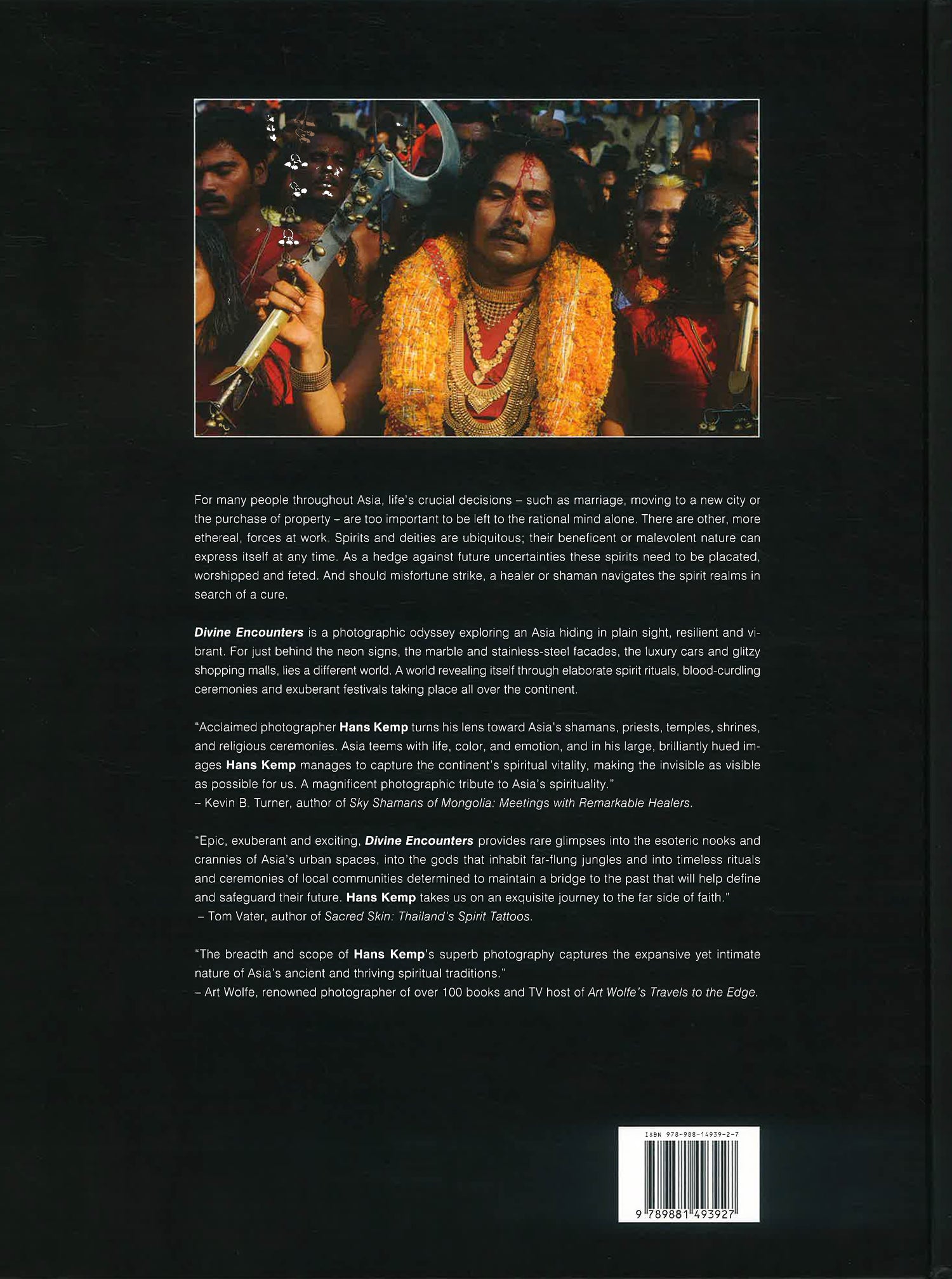 "This is a monumental work in every way - 400 pages packed with provocative images, providing a fascinating and intimate portrayal of some of Asia's most unusual festivals and rituals." - Nikkei Asian Review At first sight, Asia's rich and enigmatic culture seems to have fallen victim to the headlong pursuit of material wealth and the onslaught of the fast-food lifestyle. But look more closely and cracks in the glossy veneer of progress are appearing. Fissures reveal the remarkable survival of age-old traditions and customs, in spite of, or perhaps more accurately, precisely as a result of the rising tide of globalisation and the resulting cultural alienation. For many people throughout Asia, life's crucial decisions such as marriage, moving to a new city or the purchase of property, are too important to be left to the rational mind alone. There are other, more ethereal, forces at work. Spirits and deities are ubiquitous, their beneficent or malevolent nature can express itself at any time. As a hedge against future uncertainties these spirits need to be placated, worshipped and feted. And should misfortune strike, a healer or shaman navigates the spirit realms in search of a cure. Divine Encounters is a photographic odyssey exploring an Asia hiding in plain sight, resilient and vibrant. For just behind the neon signs, the marble and stainless steel facades, the luxury cars and glitzy shopping malls, lies a different world. A world revealing itself through elaborate spirit rituals, blood-curdling ceremonies and exuberant festivals taking place all over the continent. No book touching upon a subject so rich can ever claim to be exhaustive. What I present here is only a cross-section, covering such stalwart centres of spirit interactions as the forests of Papua New Guinea and the grasslands of Mongolia, but also including densely populated Hong Kong, industrialised Japan and the tropical beach paradise of Phuket in Thailand.