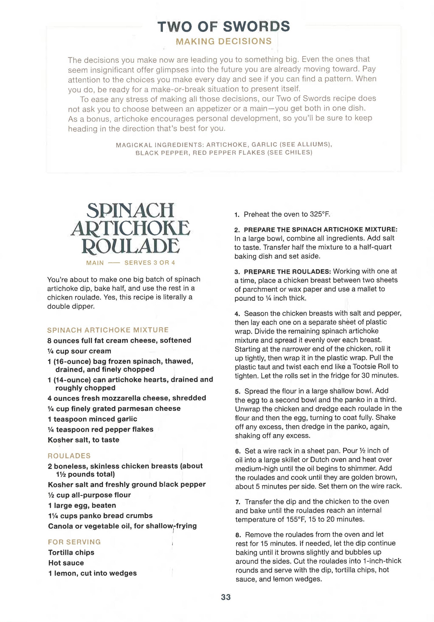 Each of the 78 recipes in this cookbook interprets a specific tarot card and its energy. Pull a card--at random or with intent--from your deck, flip to the card's corresponding recipe, and you'll find magickal ingredients to infuse your meals with spiritual energy from the Tarot.