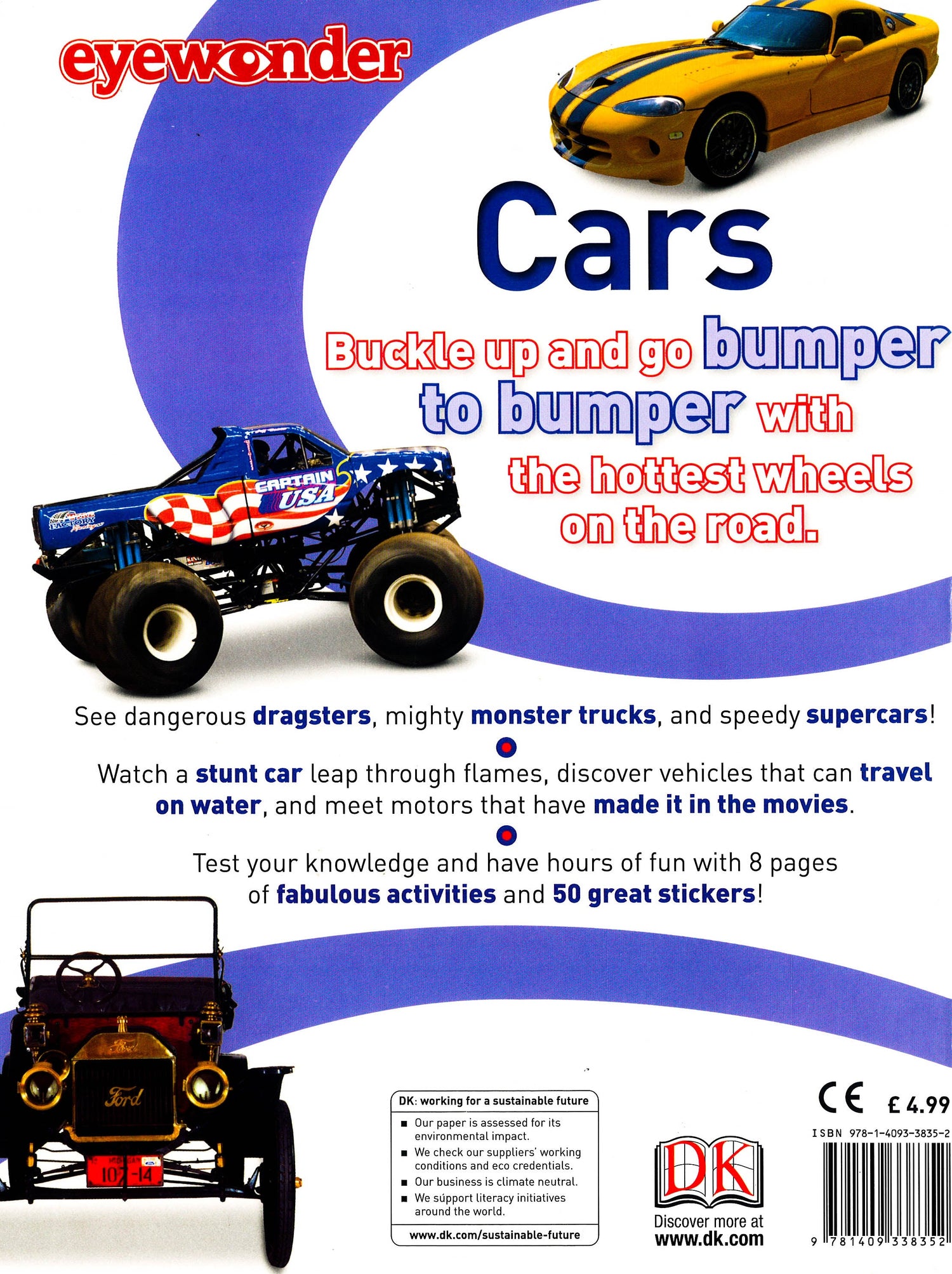 Open your eyes to a world of discovery with EyewonderTake a road trip worthy of a petrolhead and explore the world of auto-mobiles with Eyewonder Cars. Filled with eight pages packed with fun, educational activities and 100 themed stickers.From the thrills and spills of Formula 1 and NASCAR to discovering how a car is made, and from looking at the cars of the past to taking a peek at the concept cars of the future. With activities such as 'Get Set Go' and 'Which Way?' and four pages of incredible stickers, your child will be entertained time and time again.Fantastic facts and dramatic photographs will bring the wondrous world of monster trucks, super-cars, and dragsters to life and inspire your child with a love of learning and discovery. Eyewonder Cars is perfect for all curious young minds; brilliant for homework and school projects, or just for fun!