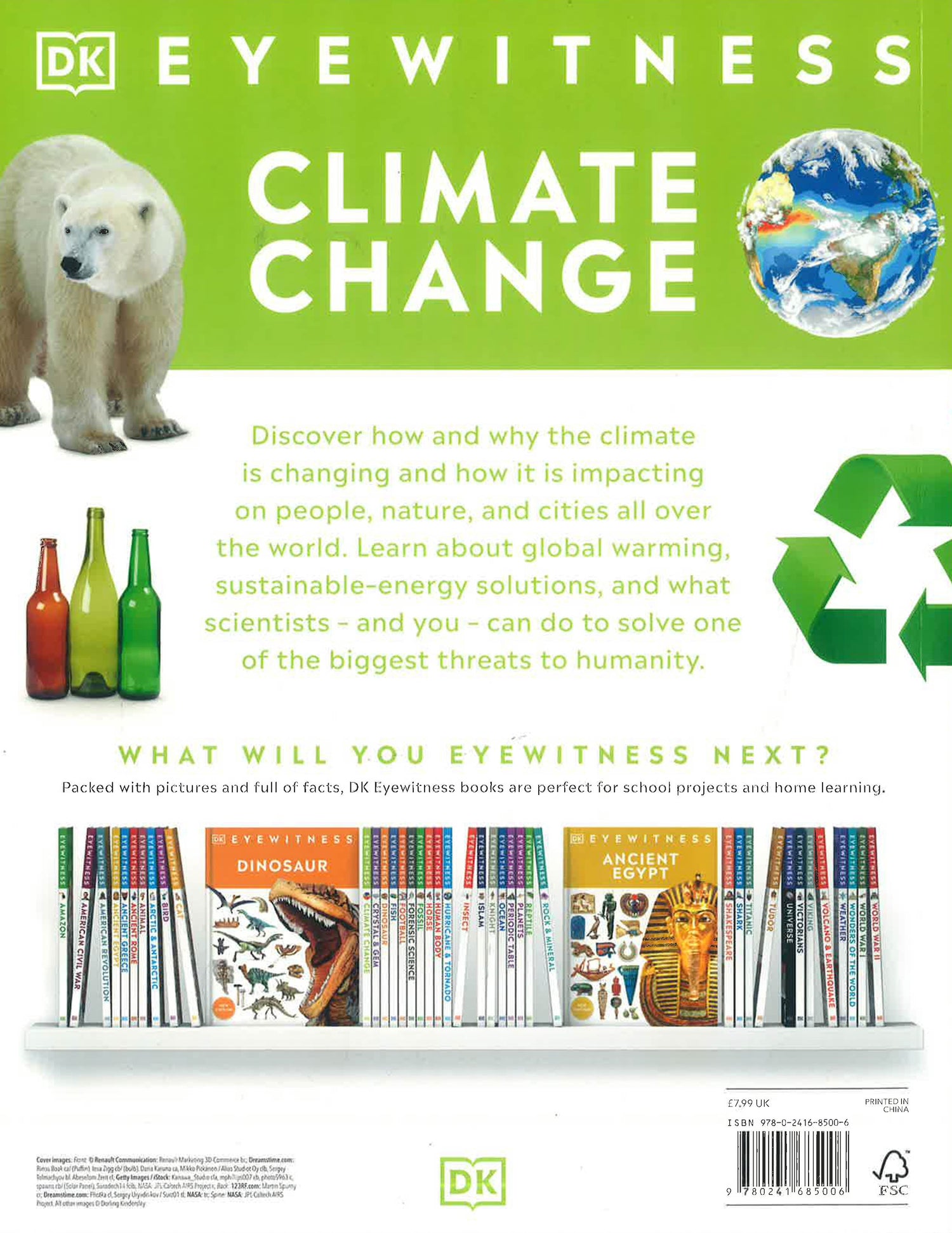 DK Eyewitness Climate Change explains why human activities are making the planet heat up. Learn all about the causes of climate change, such as fossil fuels and pollution. Explore the effects that global warming has on humans and animals across the world, from more frequent hurricanes and wildfires to melting ice caps and rising sea levels.