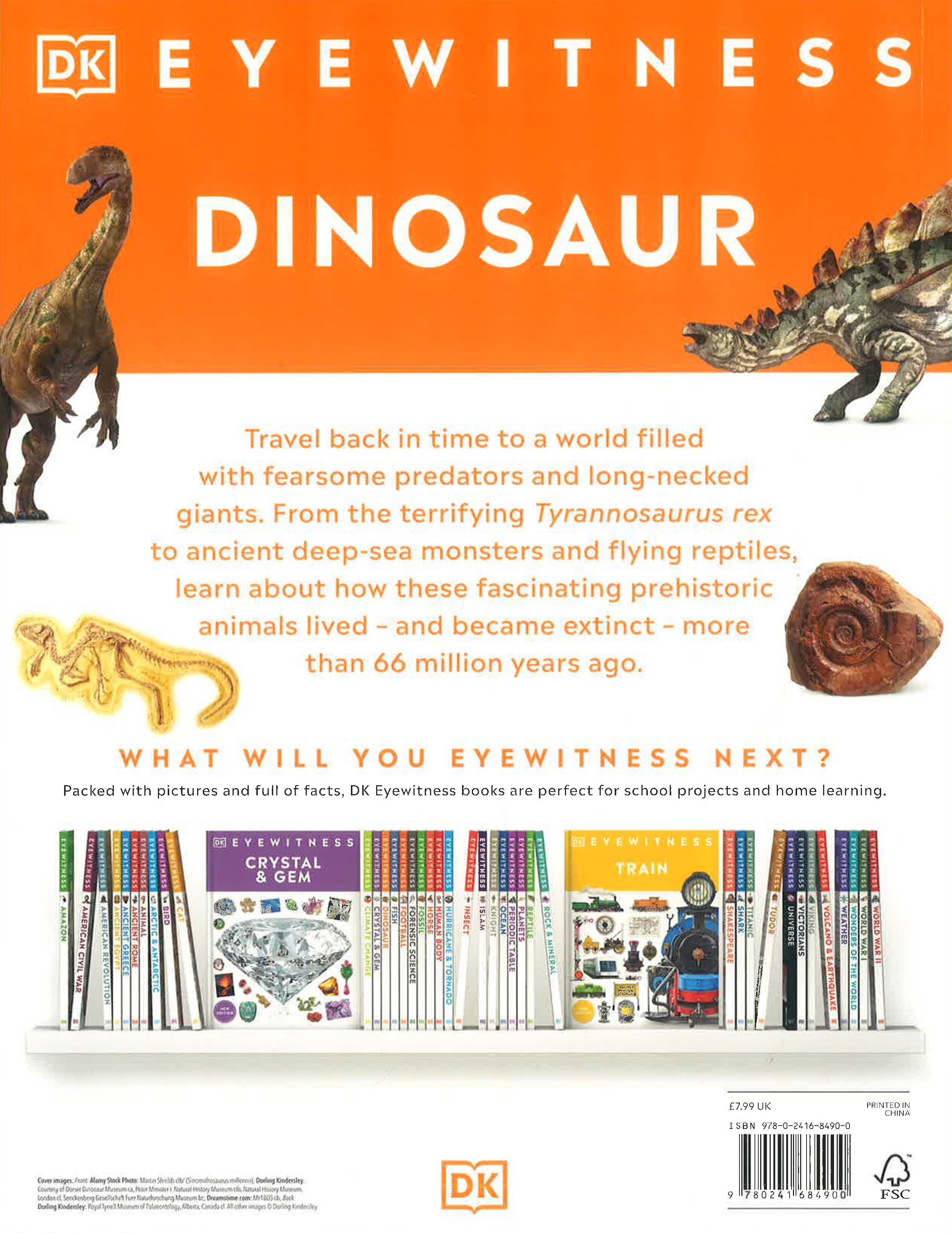 DK Eyewitness Dinosaur looks closely at different types of dinosaurs and their body parts, diets, senses, evolution, and more. Did you know that a herd of Ornithomimids could sprint from danger at a speed of up to 64 km/h (40mph)? Or that the long-necked Diplodocus was one of the largest dinosaurs to have ever walked on Earth, measuring up to 33m (108 ft).