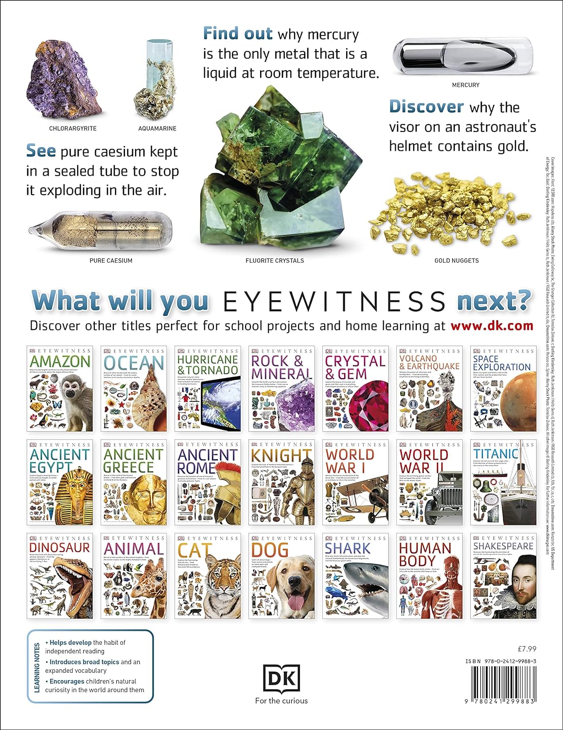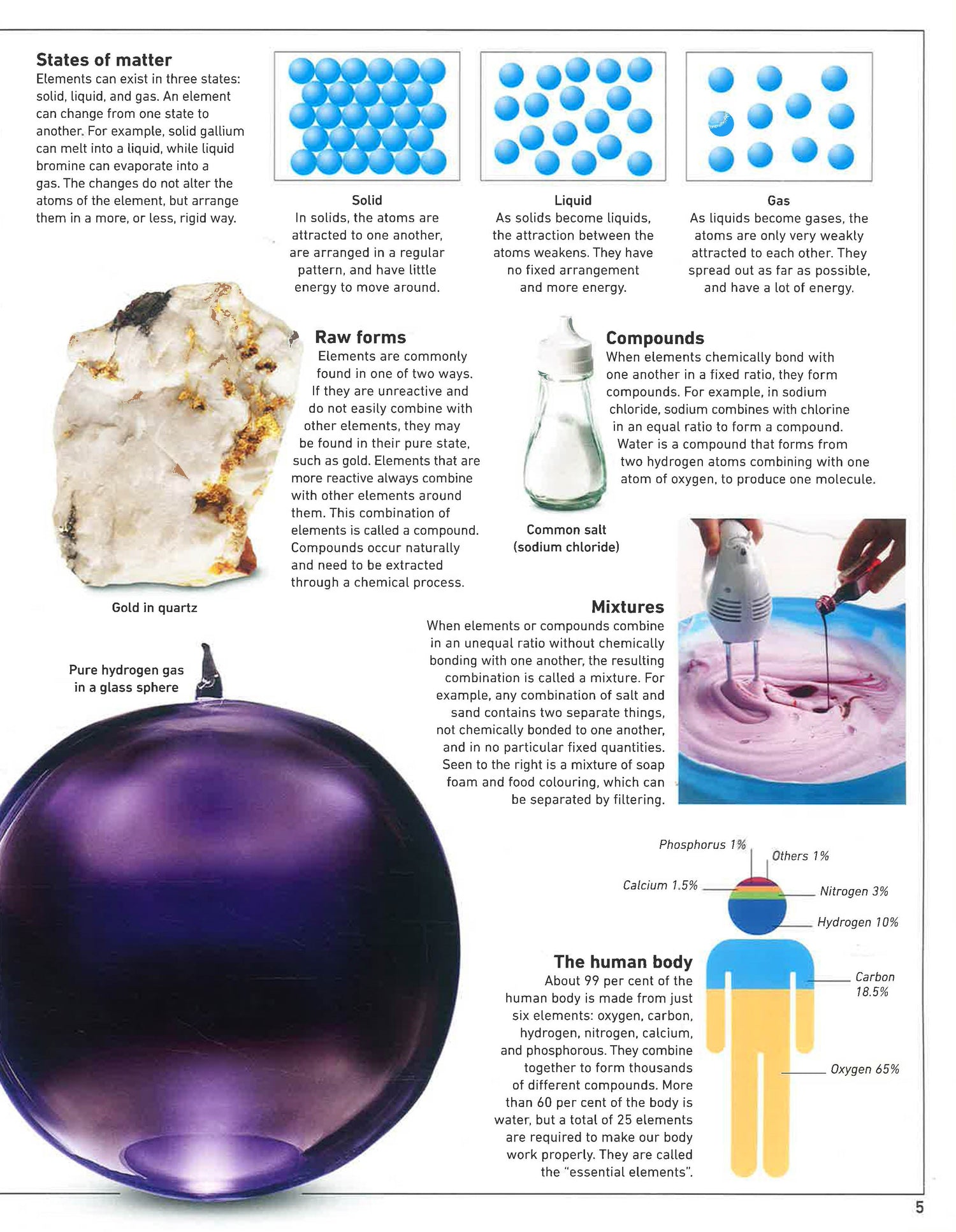 The book details what elements are and explains what lies at the core of each one of them. It then delves into the origin of every element (both naturally occurring and synthetic), where they are found, and how they are used. Explore elements such as carbon and oxygen and learn why they are essential to our survival. See how precious gold protects astronauts in space, and why the metal mercury can be both a solid and a liquid.