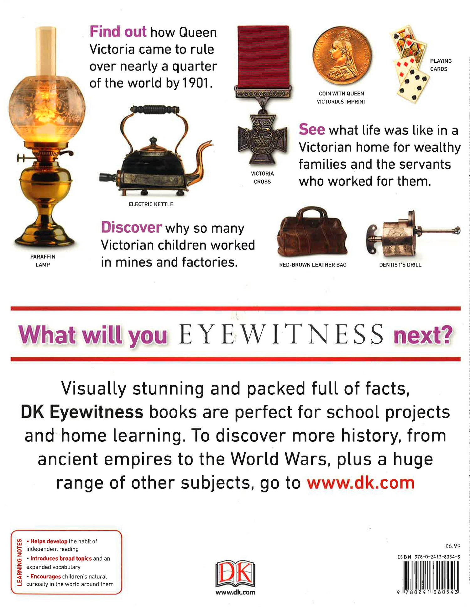 Be upstanding for the Queen! Experience a golden age in British history with this leading reference title for children, which celebrates peace, progress, and prosperity during the reign of Queen Victoria. Eyewitness Victorians is an essential part of the best-selling Eyewitness series. This comprehensive visual guide for younger readers explores how the Industrial Revolution changed the world forever. Watch vast railway networks take shape, large-scale factories hard at work, and the nationwide move from farming communities to populated cities. Learn the differences between life upstairs and downstairs in the houses of Victorian England to decide whether you would have liked to grow up in this fascinating era. This updated edition is more interactive and informative than ever before, with new infographics, statistics, facts, and timelines designed to educate and entertain. A giant fold-out wall chart of Victorian history provides a useful reference tool for classrooms and bedrooms alike.