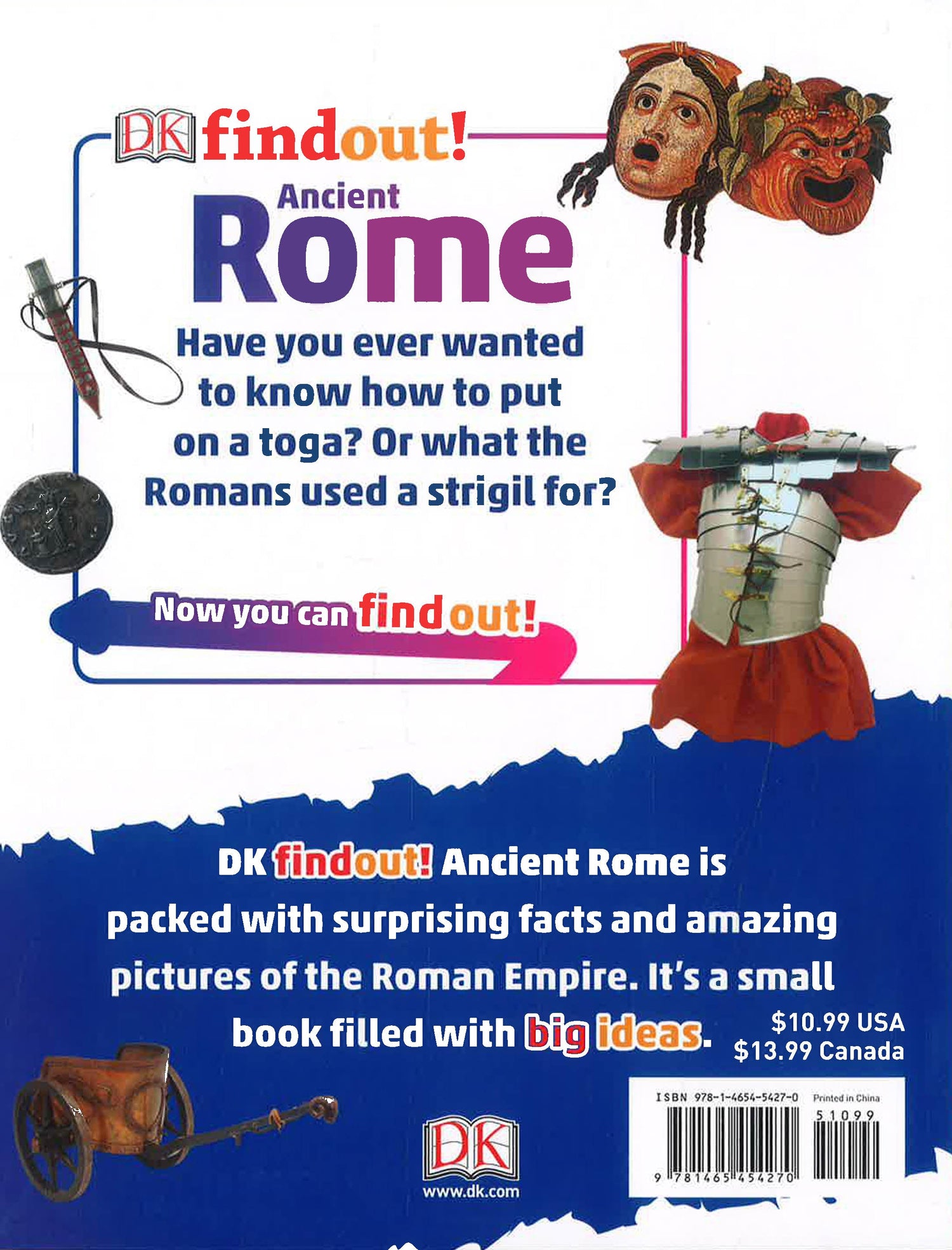 How many miles did Roman soldiers walk in a day? Which pungent food did they eat to stay healthy? What is a strigil and what did the Romans use it for? Find out the answers to these questions and more in DKfindout! Ancient Rome, which features photographs of Roman artifacts and relics, as well as maps and illustrations depicting the structure of their society, from slaves to emperors. This book explores every facet of Ancient Rome's iconic culture, including its many gods and goddesses, its Roman numeral counting system, and its most well-known architectural features, like domes, columns, and arches. From temples to togas, DKfindout! Ancient Rome details this civilization's lasting impact in a unique and fun way.