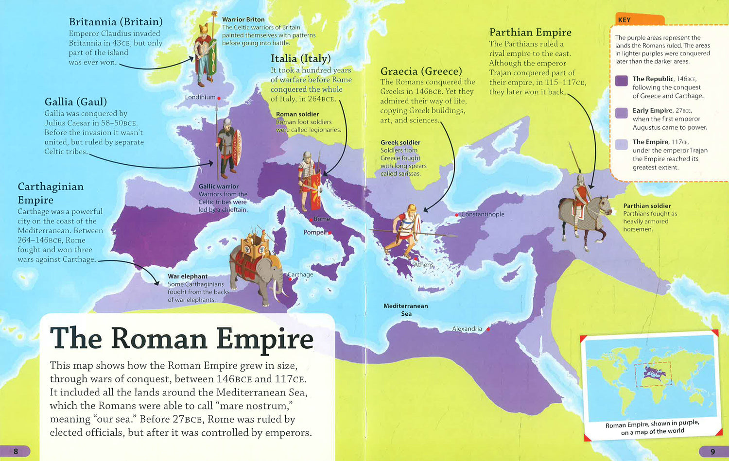 This fun, fact-filled book for kids ages 6-9 is the ultimate guide to Ancient Rome, from gladiators to amphitheaters. Entertaining and educating young readers through a combination of close-up images, quirky trivia facts, quiz questions, and fascinating tidbits, it's the perfect book for any kid who can't get enough of this remarkable civilization.