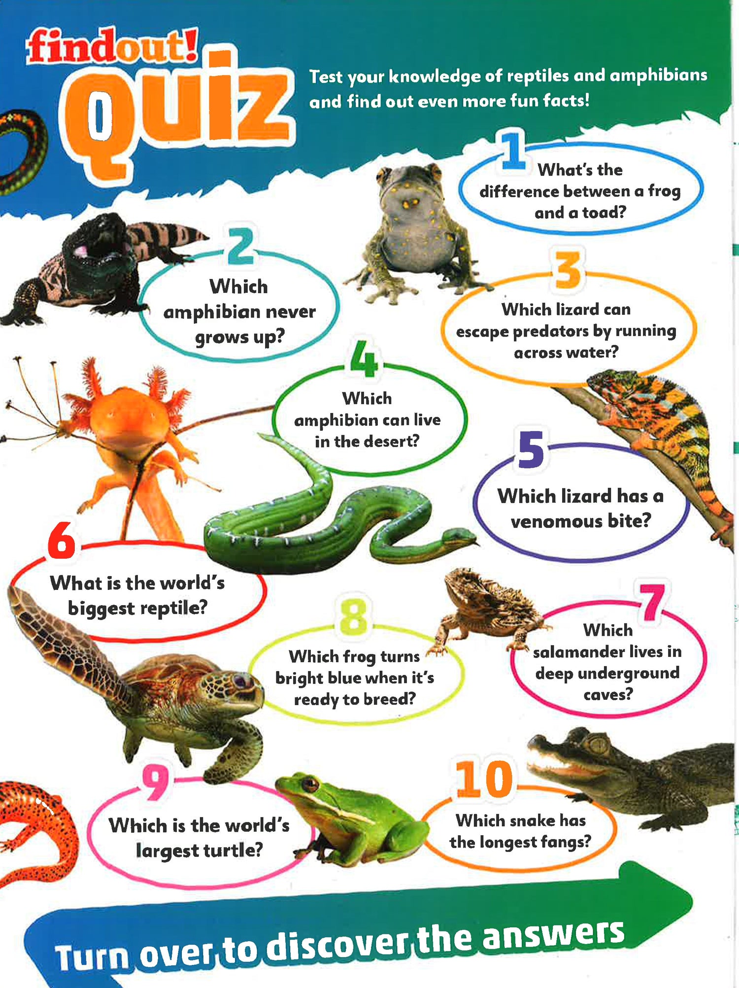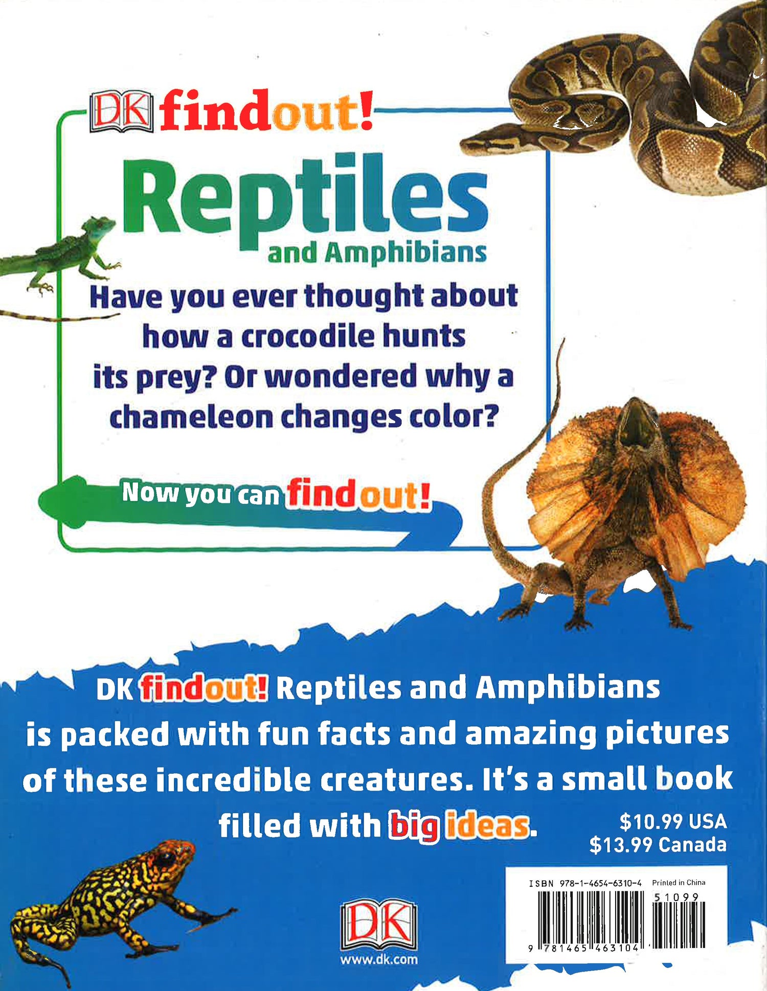 Supporting STEM-based learning, this fact-filled book for lizard lovers ages 6–9 is the ultimate guide to reptiles and amphibians from across the globe, entertaining and educating young readers through a combination of close-up images, quirky trivia facts, quiz questions, and fascinating tidbits on everything from turtles to tree frogs.What is the difference between a reptile and an amphibian? How do chameleons change their colors? How many types of frogs and toads are in the world today? Find out the answers to these questions and more in DKfindout! Reptiles and Amphibians, which features stunning wildlife photography of these animals in their native environments, throughout every stage of their life cycles. Beginning with a broad overview of taxonomy and biology, this book teaches young herpetologists what separates reptiles and amphibians from other branches of the animal kingdom, while in-depth sections on particular species show how animals have adapted to their surroundings with different mating behaviors and defense mechanisms. From chameleons to Komodo dragons, DKfindout! Reptiles and Amphibians captures the breadth of this wriggling, slithering world in a unique and fun way.Vetted by educational consultants, the DKfindout! series drives kids ages 6–9 to become experts on more than 30 of their favorite STEM- and history-related subjects, whether Vikings, volcanoes, or robots. This series covers the subjects that kids really want to learn about—ones that have a direct impact on the world around them, like climate change, space exploration, and rapidly evolving technology—making learning fun through amazing images, stimulating quizzes, and cutting-edge information. The DKfindout! series is one that kids will want to turn to again and again.