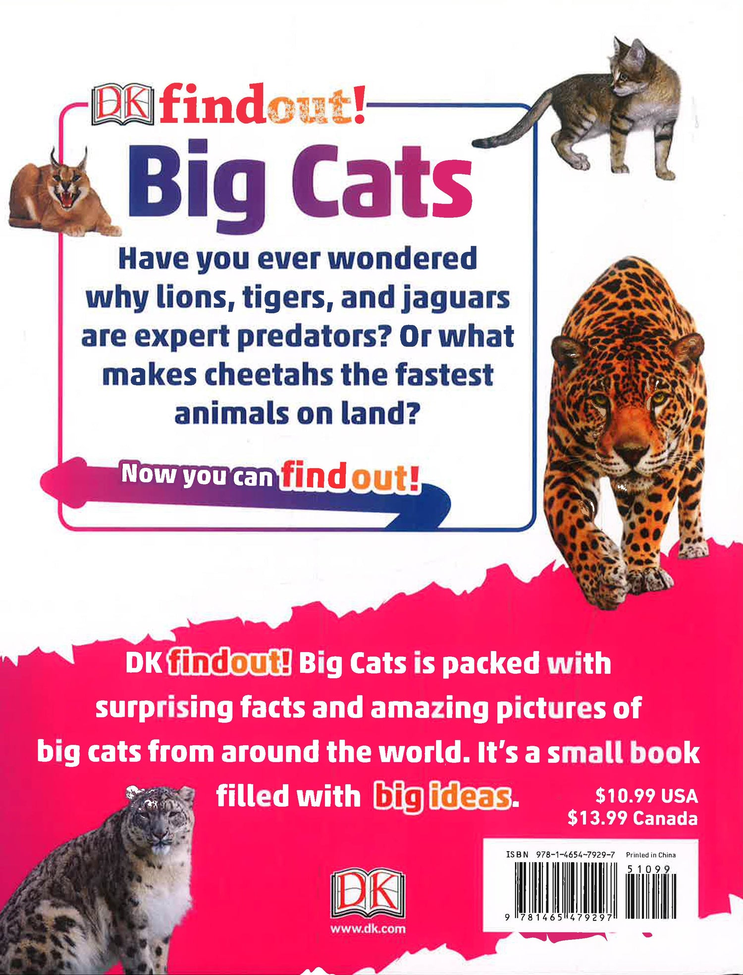 What’s the difference between big cats and wild cats? Which big cat is the only one that is unable to roar? What makes cheetahs the fastest animals on land? Find out the answers to these questions and more in DKfindout! Big Cats, which features stunning wildlife photography of these incredible creatures in their native environments. Kids will learn about the physical components of big cats from around the world-including patterned fur coats, retractable claws, and superior senses-and how these components work together to power some of the deadliest predators found anywhere today. From playful hijinks to nighttime prowling, DKfindout! Big Catscaptures the world of these awe-inspiring animals in a unique and fun way.
