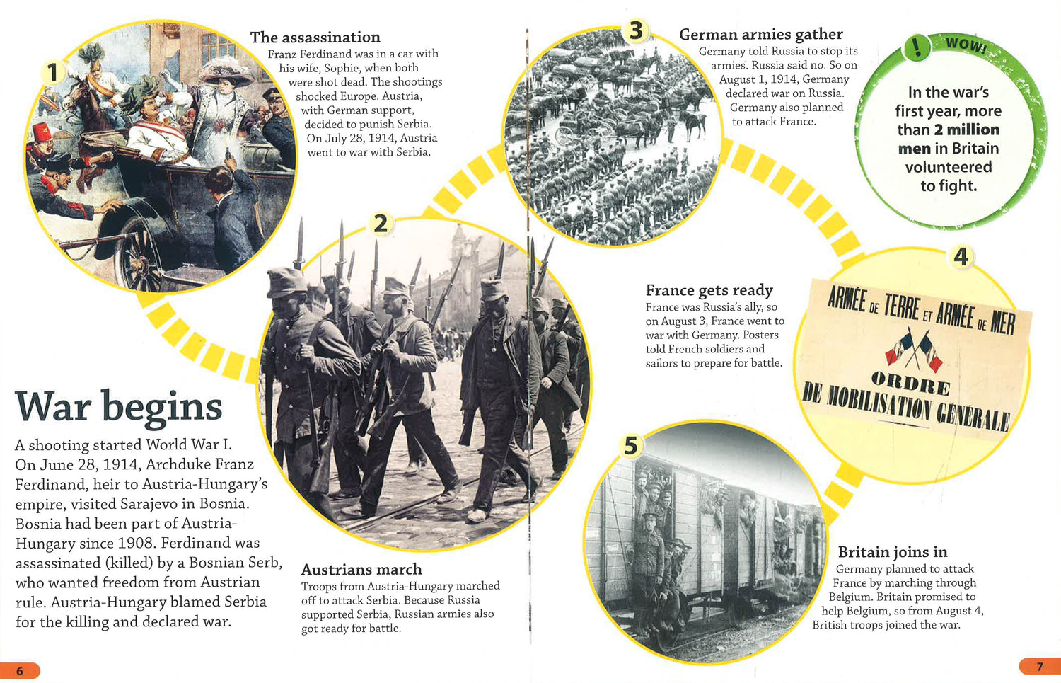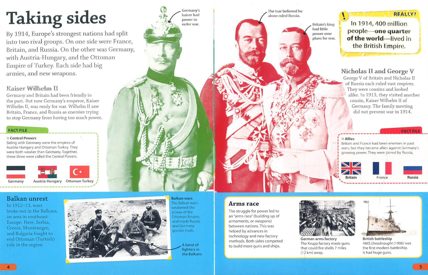 How did World War I start? Which statue was damaged in the lead-up to the United States entering the war? Which countries had the biggest army and the best weapons? Find out the answers to these questions and more in DKfindout! World War I, which features photographs and illustrations of war machines, battlefields, and world leaders from throughout the span of this widespread conflict. Readers will learn about both sides of the war—the Central Powers and the Allied Powers—as well as each country’s motivation for entering the conflict. Sections on military strategy and life during the war delve deeper into central subtopics, and detail how advancements in military technology like tanks and chemical weapons changed the course of battles all across the European continent.