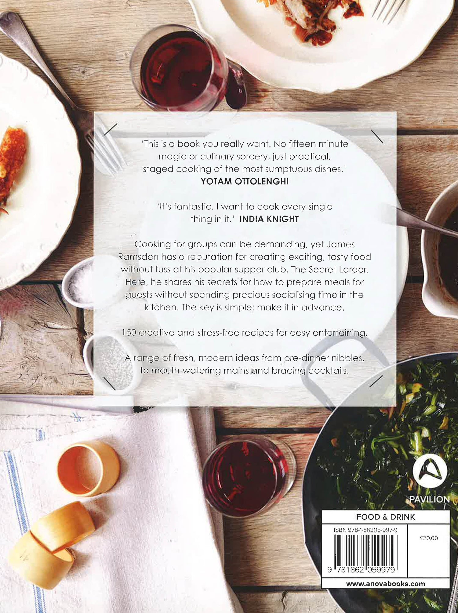 Cooking for groups can be a stressful operation, yet at his supper club, The Secret Larder, James Ramsden has built a reputation for creating exciting, trendy, tasty food without the gaga gourmet, whilst being able to maintain a relaxed and sociable presence amongst the guests. This is because he prepares the majority of his food ahead. Cooking for groups can be a stressful operation, yet at his supper club, The Secret Larder, James Ramsden has built a reputation for creating exciting, trendy, tasty food without the gaga gourmet, whilst being able to maintain a relaxed and sociable presence amongst the guests. This is because he prepares the majority of his food ahead.