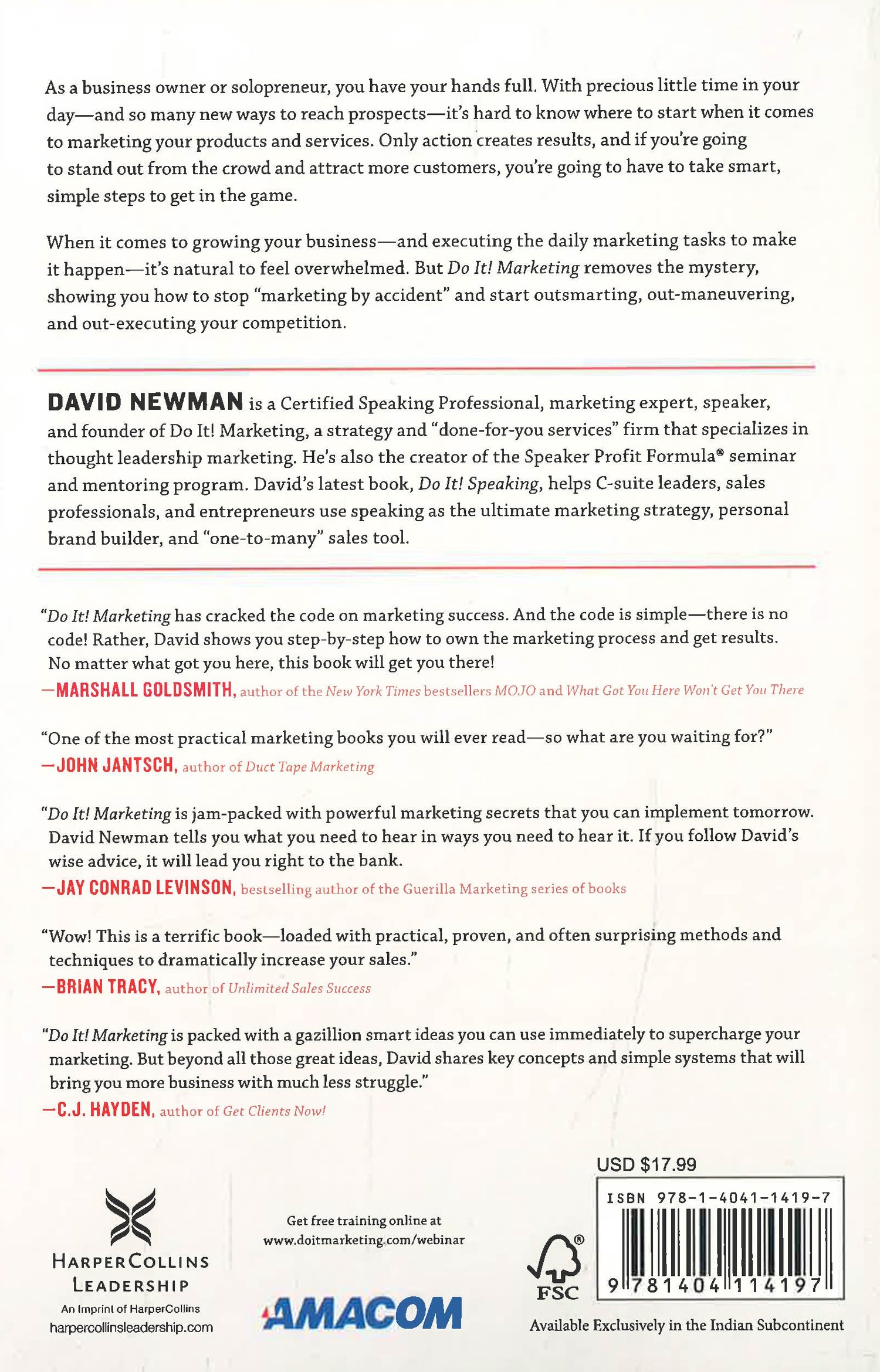 As a business owner, everything you’ve worked so hard to achieve thus far depends on getting the word out to the right people. Marketing your product or service is detrimental to your survival! With that said, it is not an exaggeration to say that the most important hat a business owner wears is that of marketer. But as entire business degrees and companies have been built around the marketing industry, how could you ever wear that hat for your company? Where does an entrepreneur such as yourself even begin to learn how to market your business successfully?With so many new ways to reach customers and clients and only so much time in the day, it's hard to know where to start. Social media? Email? Blogs? Video? SEO? Do It! Marketing breaks down marketing into a series of simple decisions (and the action steps to implement those decisions) that will help you regain the clarity, confidence, and control you need to succeed. Packed with do-this-now ideas intended to attract, engage, and win more customers and clients, this no-nonsense book reveals how to: • Avoid blah, blah, blah marketing • Use magnetic marketing strategies that pull--not--push-qualified decision-makers into your world • Position yourself as an expert • Become the obvious choice in your market • Do social media right • Learn to speak your customers’ language • Get a steady stream of referrals • Identify and focus on high-payoff activities • And more!Energetic, inspiring, and filled with concrete strategies, tactics, templates, and tools, Do It! Marketing shows you how to stop marketing like an amateur and start outsmarting, out-positioning, and out-executing the competition.
