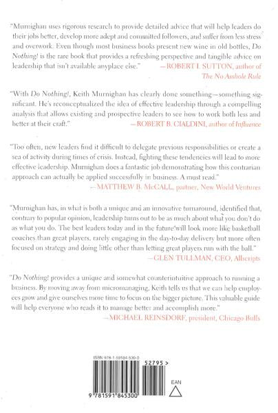 Imagine you?ve just come back to work after a two-week vacation during which you actually relaxed, without calling in or checking e-mail. You discover that there are no pressing issues and that, on the contrary, your team scored a big new customer and fixed a nagging problem during your absence. No red flags or fires to put out. Sadly, for most leaders this scenario is only a dream. They constantly check on what?s happen?ing because they expect the worst (and usually get it). But Keith Murnighan shows that not only is ?do nothing? leadership possible, it is also far more effective than doing too much. Great leaders don?t work; they facilitate and orchestrate. They think of great strategies and help others implement them. They spend their time preparing for the future. They take a comprehensive view of their terrain while also noticing key details so they can confidently choose the right forks in the road. In other words, great leaders don?t do any?thing?except think, make key decisions, help people do their jobs better, and add a touch of organizational control to make sure the final recipes come out okay. In sharp contrast, most leaders are too busy actually working to do these things?and their teams suffer as a result. Do Nothing!?s practical strategies and true stories will show you how to set high expec?tations for your team and watch it rise to the challenge. It will help you establish a healthier culture by trusting people more than they expect to be trusted. And it will help you overcome your natural tendencies toward micromanagement so you can let people do their jobs?even when you know you could do their jobs better. As Murnighan writes, ?My experience suggests that you will be surprised?wildly surprised. Peo?ple on your team will reveal skills you never knew they had and will accomplish things that go far beyond your estimate of their capabilities. They might not do things the way you would do them, but they will get results you never expected. Every?one has hidden talents, and most leaders never discover them. Before you reject this approach, ask yourself: what if you did nothing and it actu?ally worked??