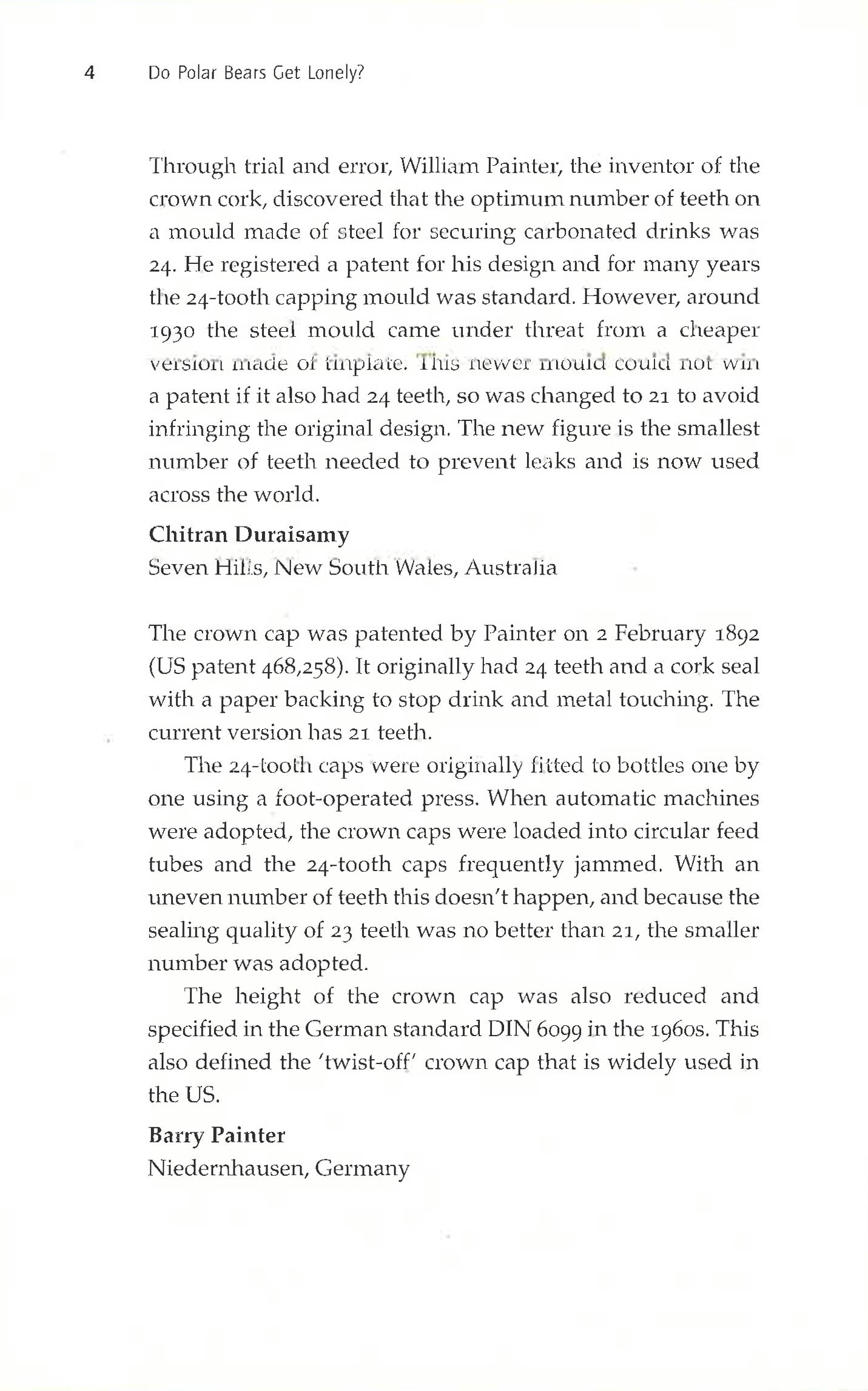 Do Polar Bears Get Lonely? is the third compilation of readers' answers to the questions in the 'Last Word' column of New Scientist, the world's best-selling science weekly.