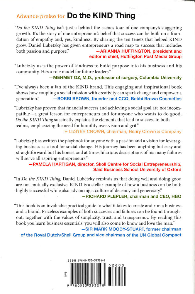 For the socially conscious, the intellectually curious, or the creative soul comes an inspiring, New York Times bestselling handbook for success in business, life, and the all-important task of building a more compassionate world--by the visionary founder and CEO of KIND Healthy Snacks. When Daniel Lubetzky started KIND Healthy Snacks in 2004, he aimed to defy the conventional wisdom that snack bars could never be both tasty and healthy, convenient and wholesome. A decade later, the transformative power of the company's "AND" philosophy has resulted in an astonishing record of achievement. KIND has become the fastest-growing purveyor of healthy snacks in the country. Meanwhile, the KIND Movement--the company's social mission to make the world a little kinder has sparked more than a million good deeds worldwide. In Do the KIND Thing, Lubetzky shares the revolutionary principles that have shaped KIND's business model and led to its success, while offering an unfiltered and intensely personal look into the mind of a pioneering social entrepreneur. Inspired by his father, who survived the Holocaust thanks to the courageous kindness of strangers, Lubetzky began his career handselling a sun-dried tomato spread made collaboratively by Arabs and Jews in the war-torn Middle East. Despite early setbacks, he never lost his faith in his vision of a "not-only-for-profit" business--one that sold great products and helped to make the world a better place. While other companies let circumstances force them into choosing between two seemingly incompatible options, people at KIND say "AND." At its core, this idea is about challenging assumptions and false compromises. It is about not settling for less and being willing to take greater risks, often financial. It is about learning to think boundlessly and critically, and choosing what at first may be the tougher path for later, greater rewards. By using illuminating anecdotes from his own career, and celebrating some past failures through the lessons learned from them, Lubetzky outlines his core tenets for building a successful business and a thriving social enterprise. He explores the value of staying true to your brand, highlights the importance of transparency and communication in the workplace, and explains why good intentions alone won't sell products. Engaging and inspirational, Do the KIND Thing shows how the power of AND worked wonders for one company and could empower the next generation of social entrepreneurs to improve their bottom line and change the world. * This book may have reminder mark*