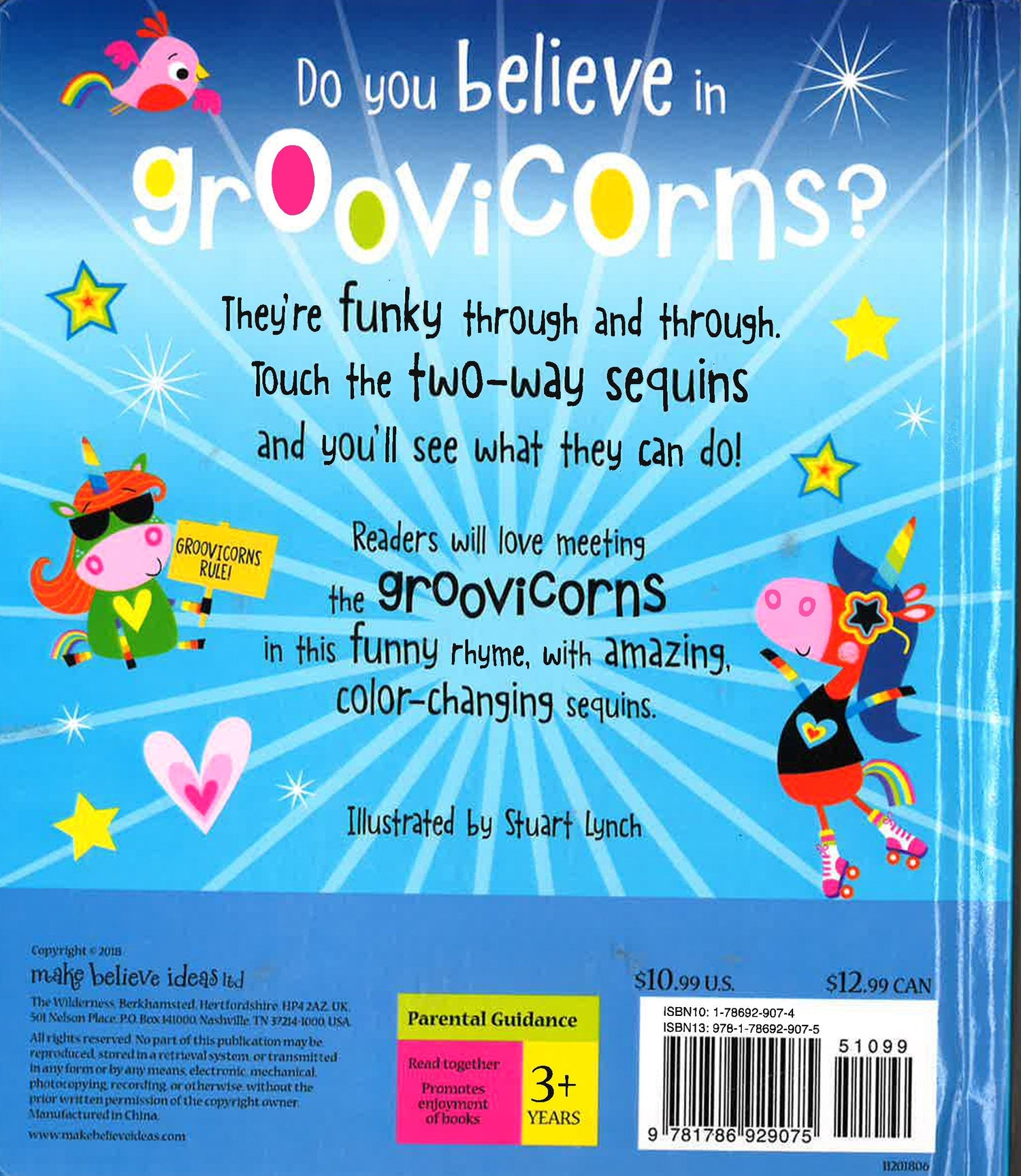 A tactile, touch-and-feel book with color-changing sequins! Everyone loves unicorns, but the groovicorns are even more fun!