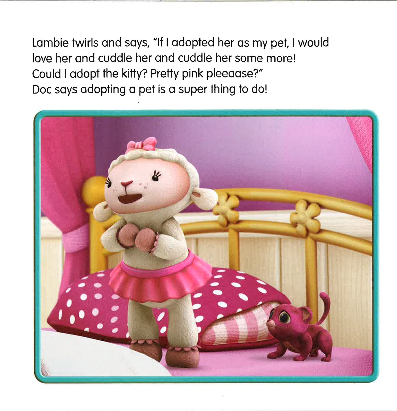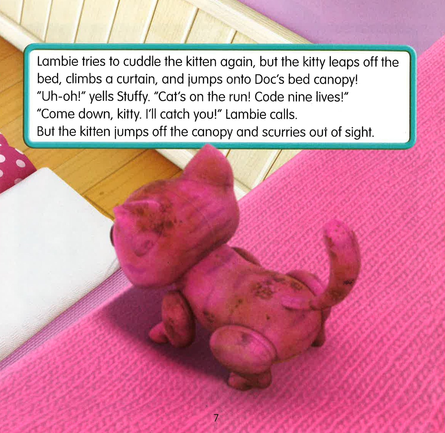 After Doc finds an adorable toy kitten at her school's fundraiser, she brings her home to meet the toys. Lambie instantly falls in love with the cute little kitty and wants to adopt her. But anytime Lambie or the toys come close, the kitten runs away! Can Doc help? Join Doc in this Pet Vet-themed storybook with stickers!