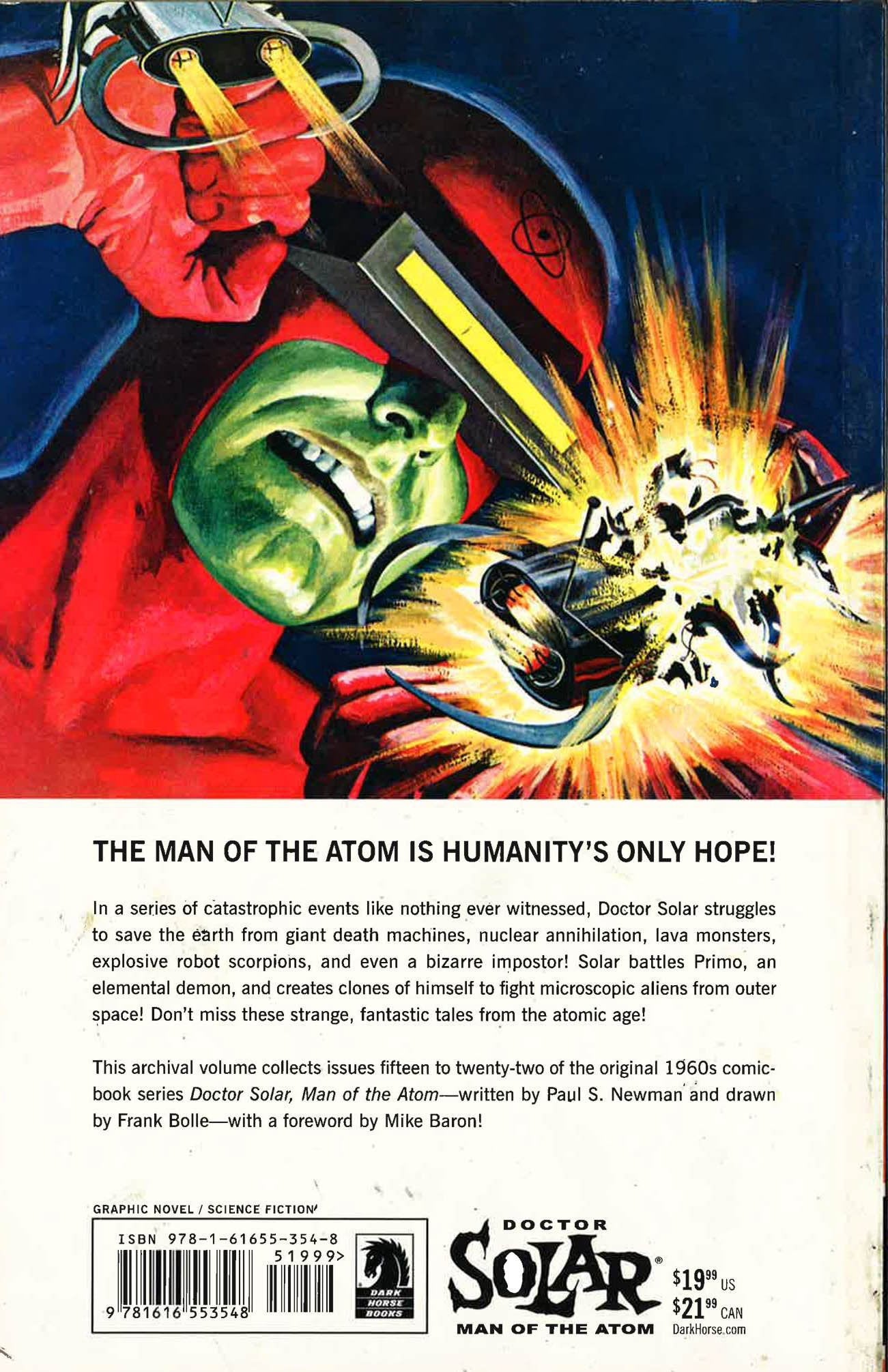 The Man of the Atom is humanity's only hope! In a series of catastrophic events like nothing ever witnessed, Doctor Solar struggles to save the earth from giant death machines, nuclear annihilation, lava monsters, robot scorpions, and even a bizarre Doctor Solar clone! Hurtling back in time, Solar relives the incredible events that both blessed and cursed him with godlike powers! Solar battles Primo--an elemental demon--and a million Solars fight microscopic aliens from outer space! Don't miss the strangest, most fantastic tales from the atomic age! This archival volume collects issues #15 to #22 of Gold Key's revolutionary science fiction/adventure series. Featuring a foreword by Mike Baron (Nexus, Badger)!