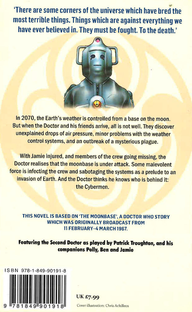 This novel is based on 'The Moonbase', a Doctor Who sci-fi story that was originally broadcast from 11 February-4 March 1967.