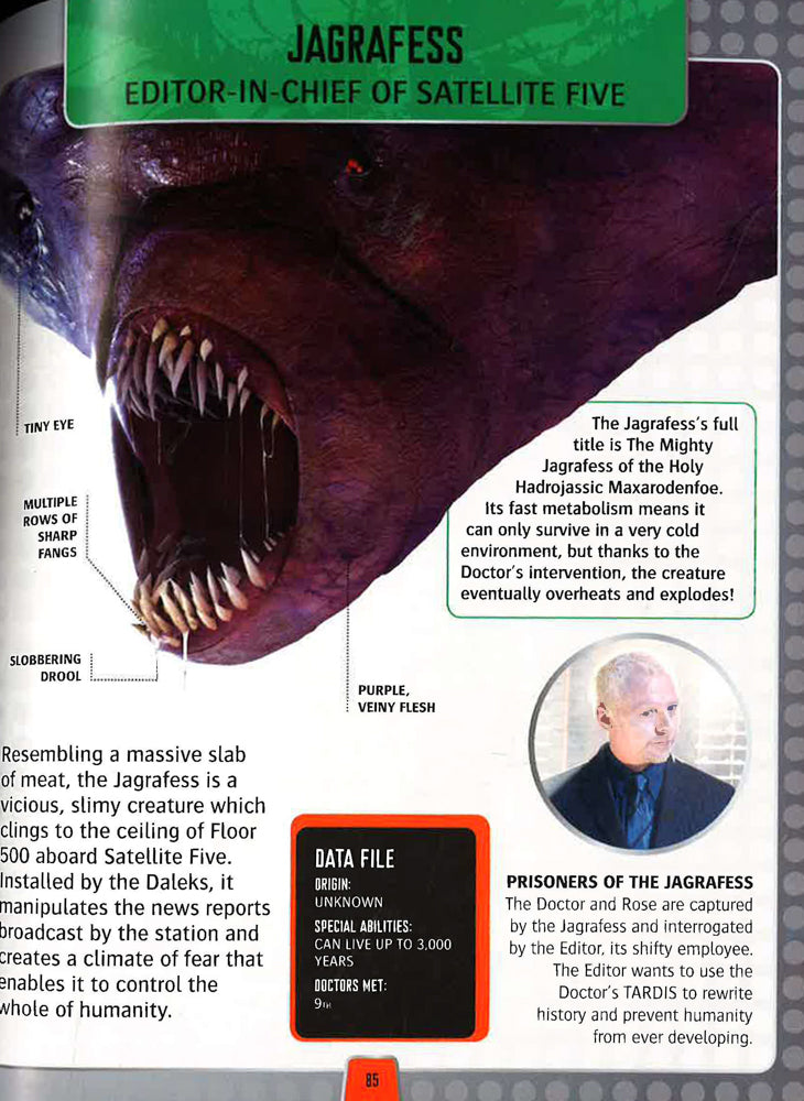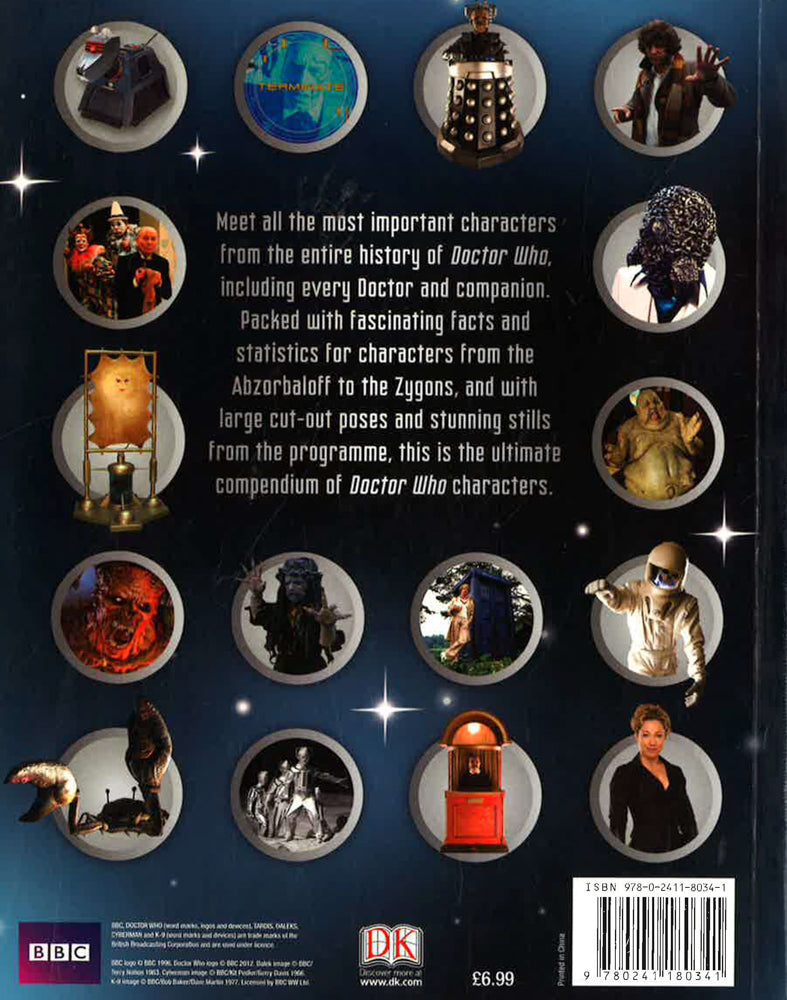 Meet all the most important characters from the entire history of Doctor Who, including every Doctor and companion. Packed with fascinating facts and statistics for characters from the Abzorbaloff to the Zygons, and with large cut-out poses and stunning stills from the programme, this is the ultimate compendium of Doctor Who characters.