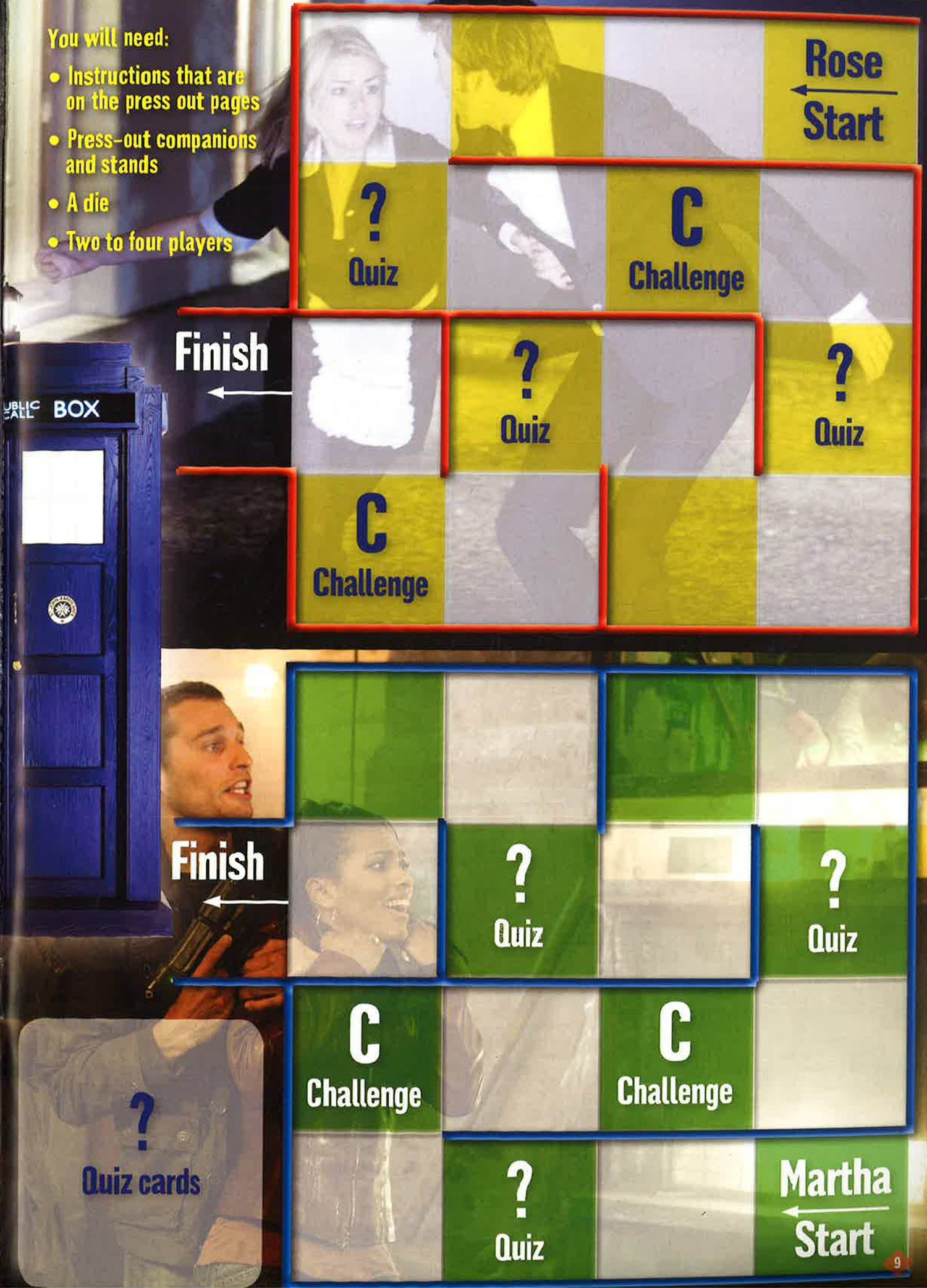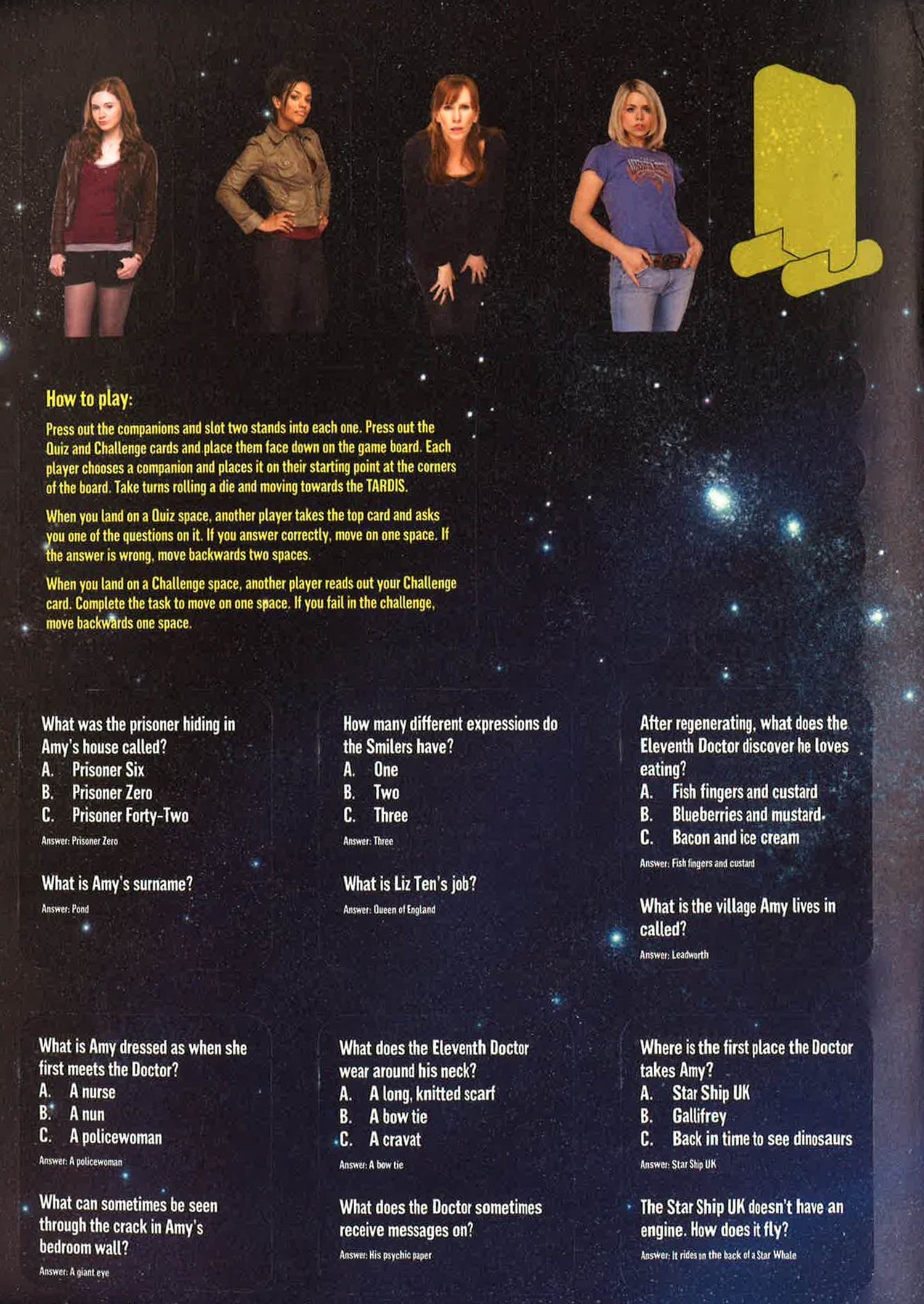 Could you be the 11th Doctor's companion? Complete the activities and add up your scores to find out if you've got what it takes to travel in the TARDIS. Then, find some friends to play the exciting Companion Challenge game, with press-out Quiz and Challenge cards. This is the perfect companion for fans of the phenomenal BBC programme.