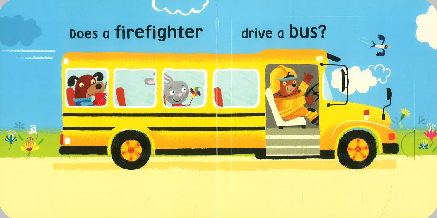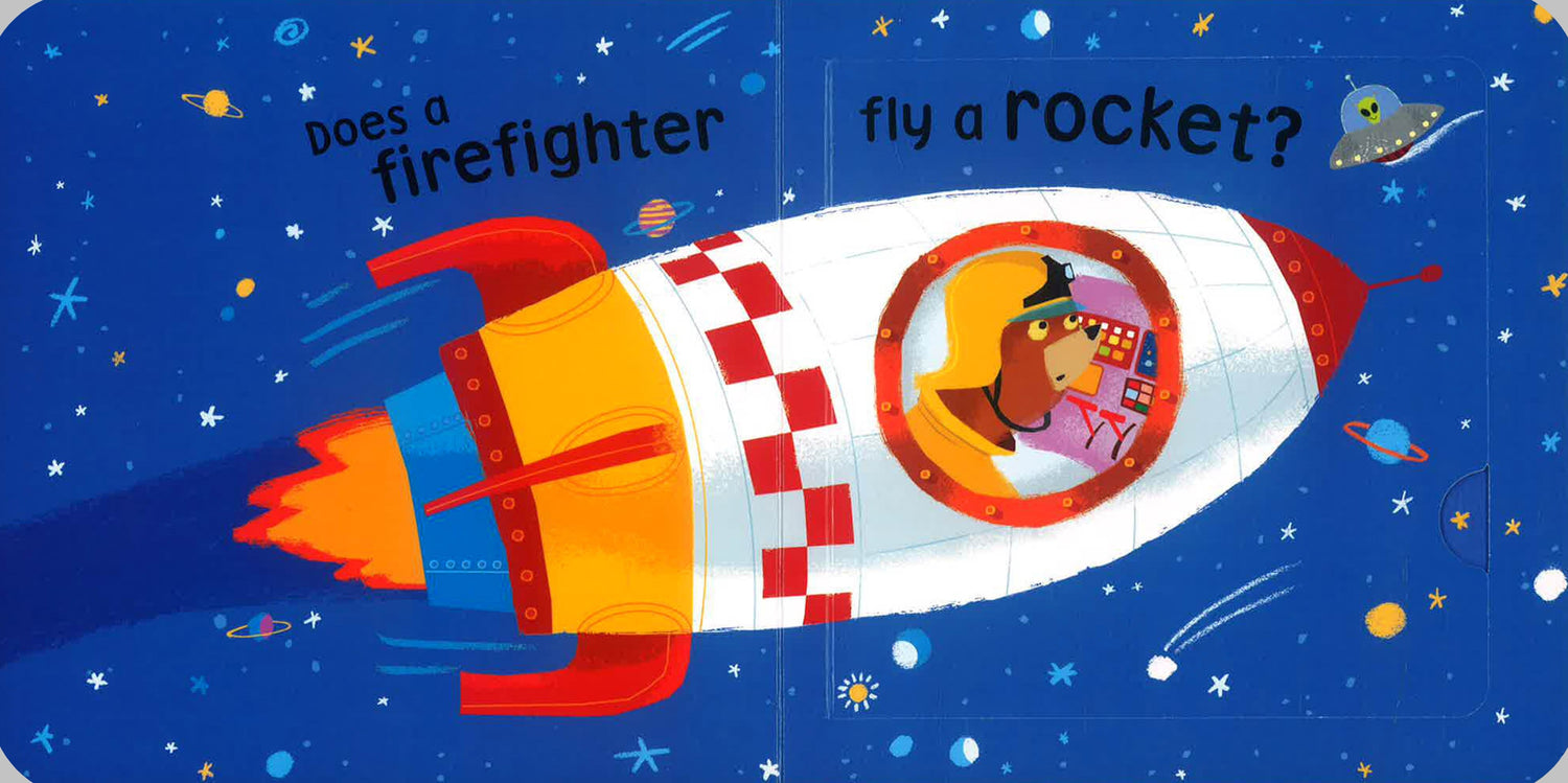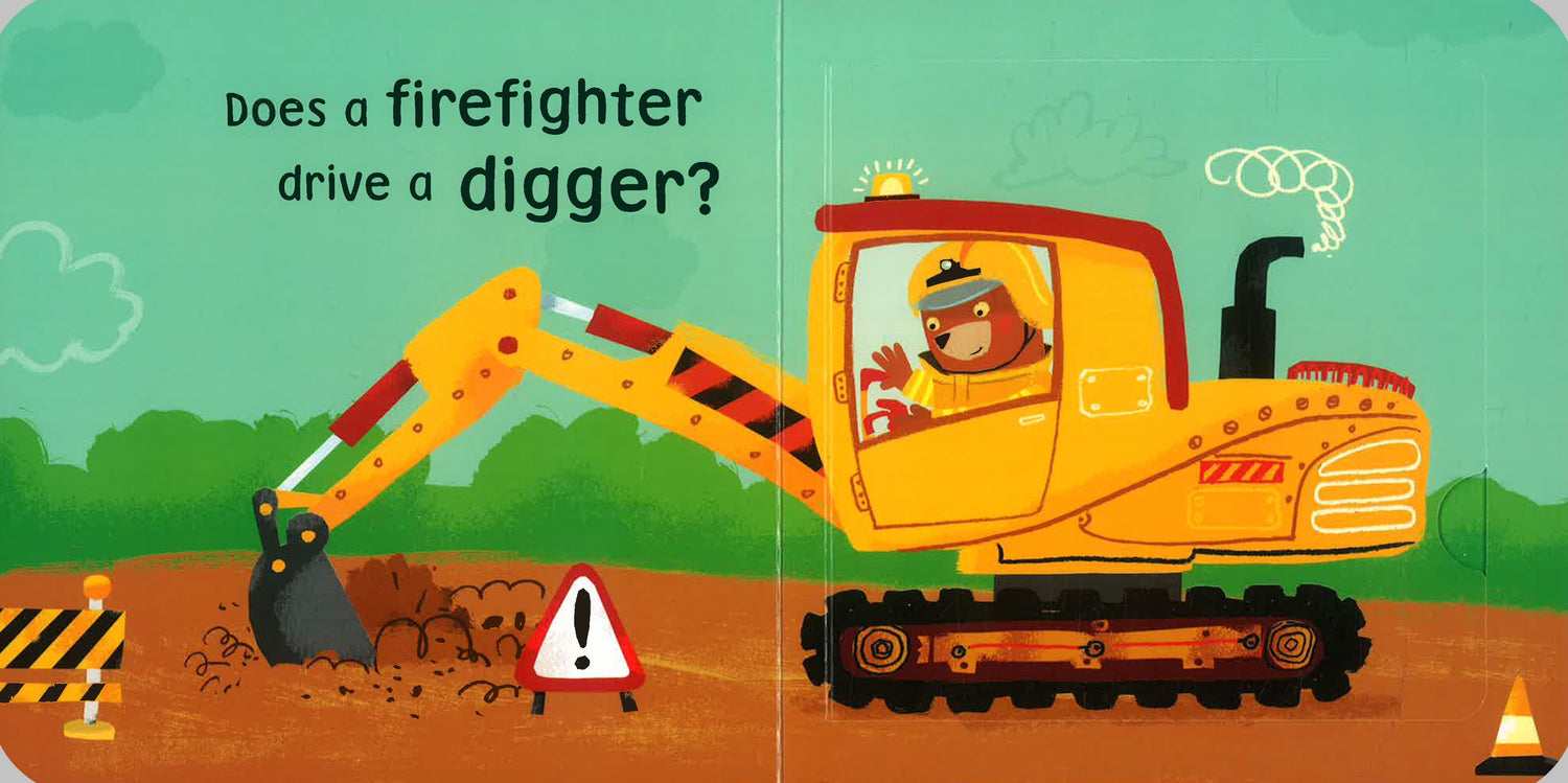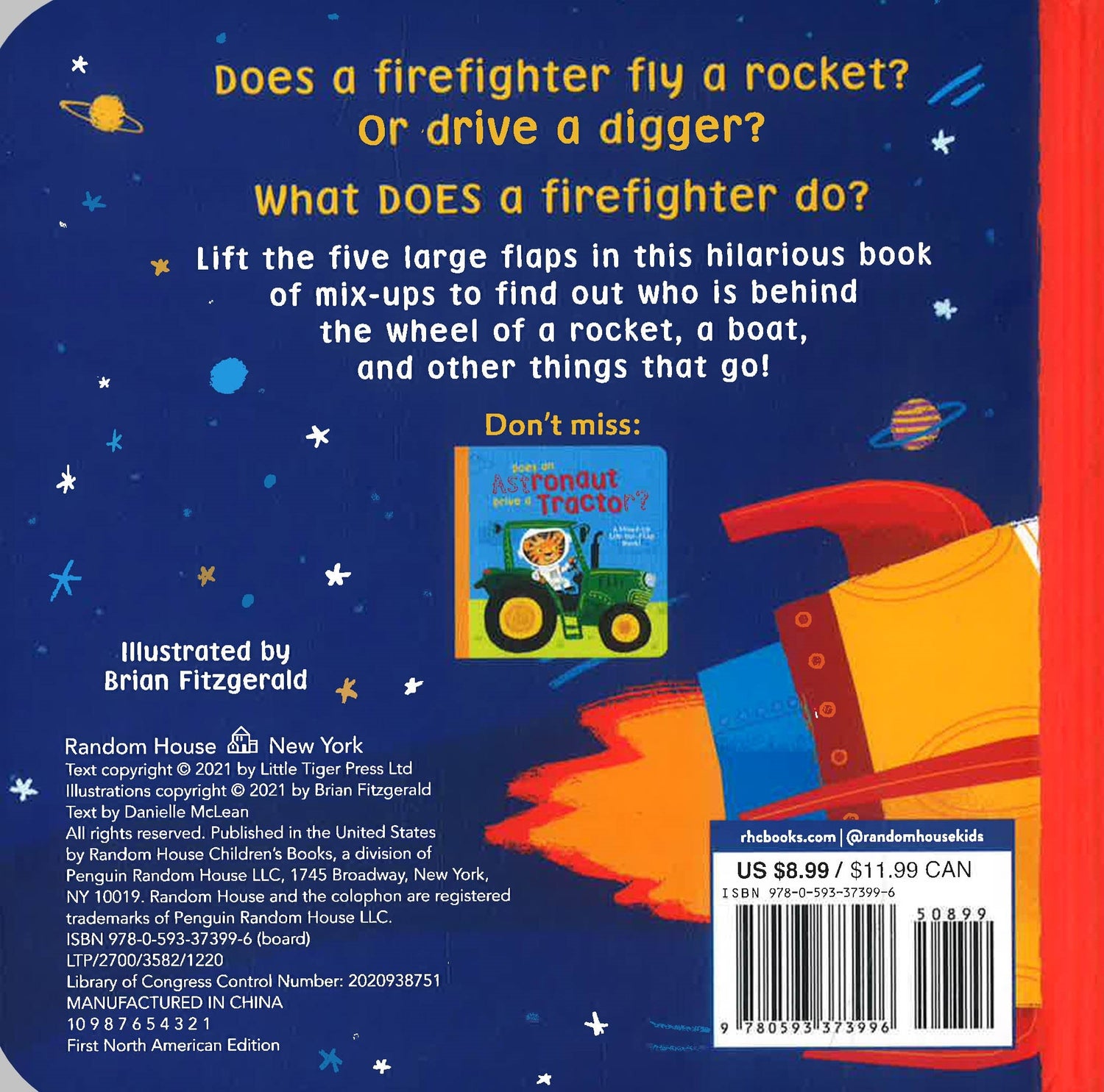 Does a firefighter fly a rocket? Or drive a digger? What DOES a firefighter do? Find out in this fun lift-the-flap board book that invites little ones to match each grown-up job with its working vehicle!