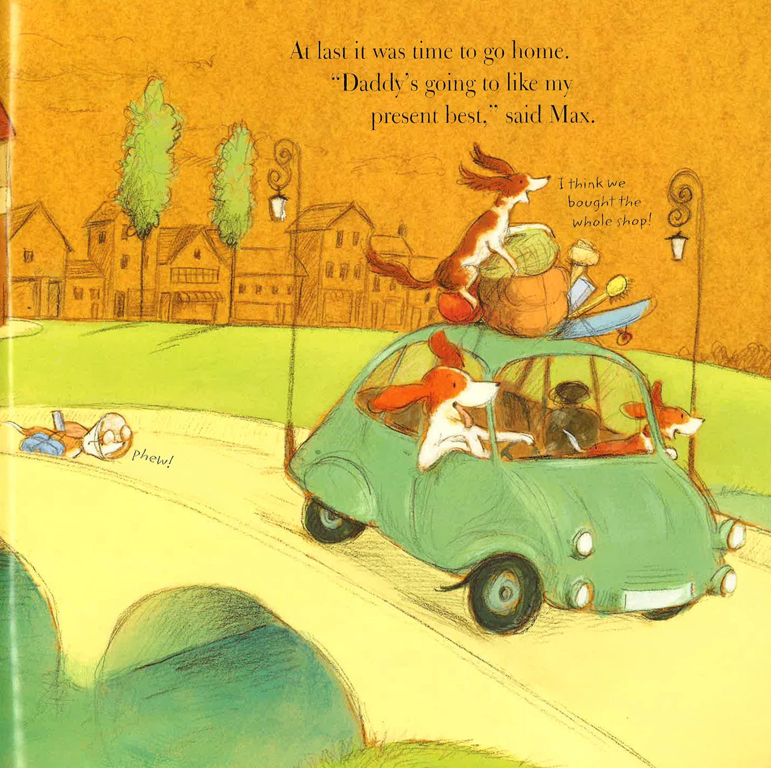 It's Daddy's birthday and Max wants to buy him the best present ever! But when Max and Mummy go shopping, Mummy wants to buy Daddy boring presents - like flea powder. Nothing seems quite right util Max discovers the toy department. There are so many fun things to choose from that Max has to play with every toy before he can choose the best. A charming, funny story - children will love trotting round the departments and finding all of the daft doggy details along the way.