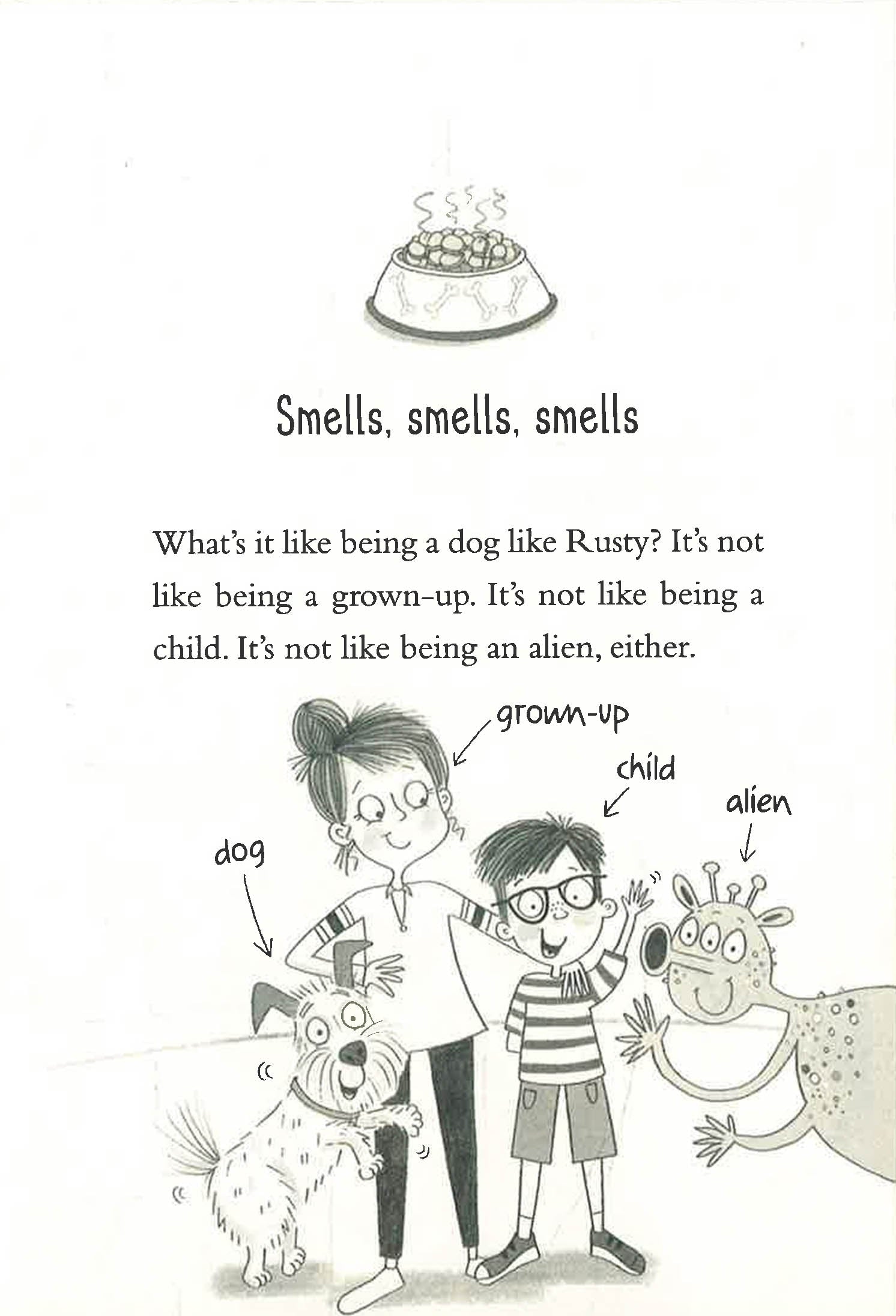 Join Rusty the terrier as he goes about his day with his family. Discover how Rusty sees and mostly smells the world around him. Rusty uses his amazing nose to recognise his friends - human and dog! - it tells him where to find something tasty to eat and how to get back to his owner.