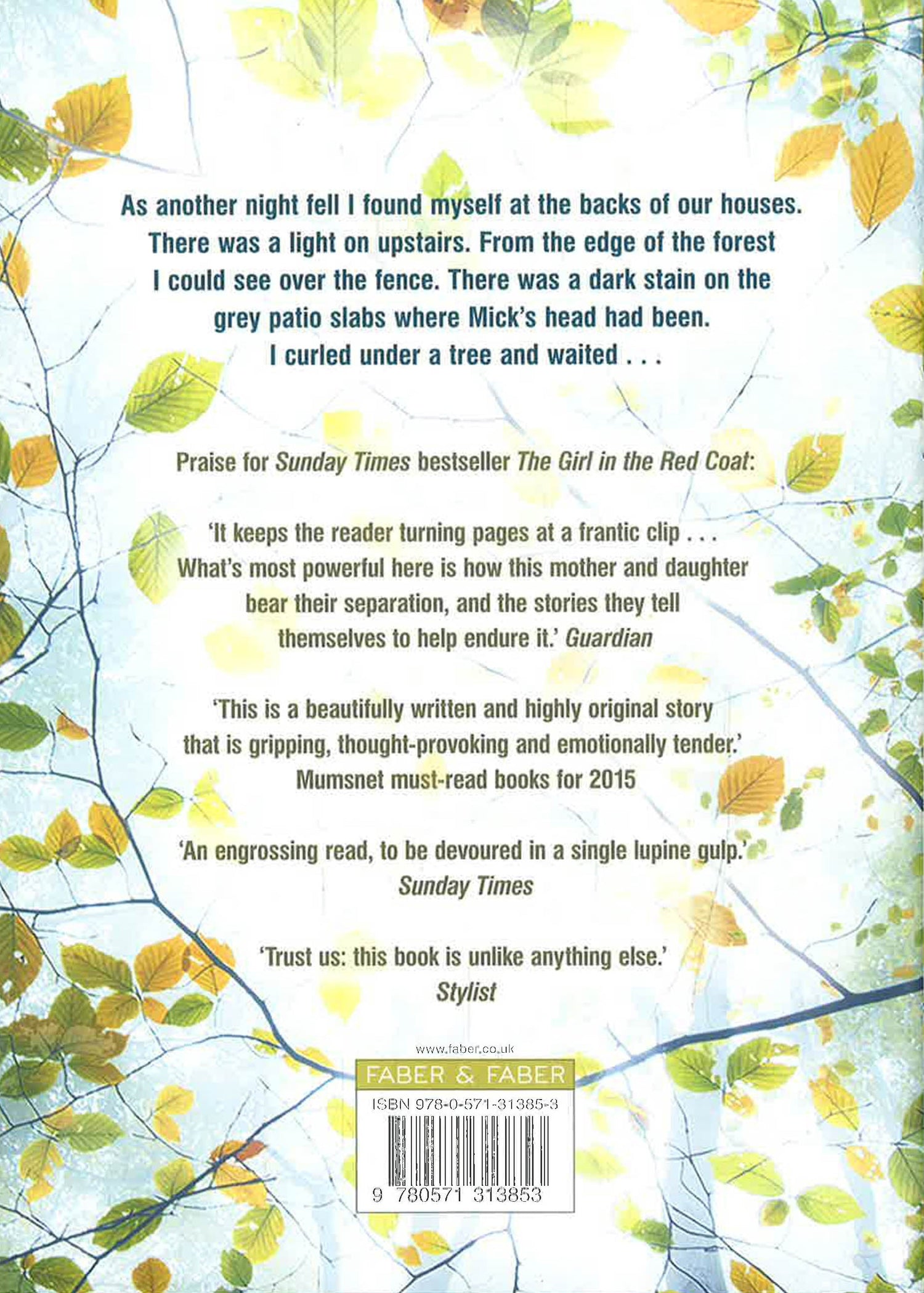 I did tell Mick that I saw the woman in the buttercup dress, hanging upside down from her seat belt deep in the forest at the back of our house. I told him I saw death crawl out of her. He said he'd give me a medal for lying.