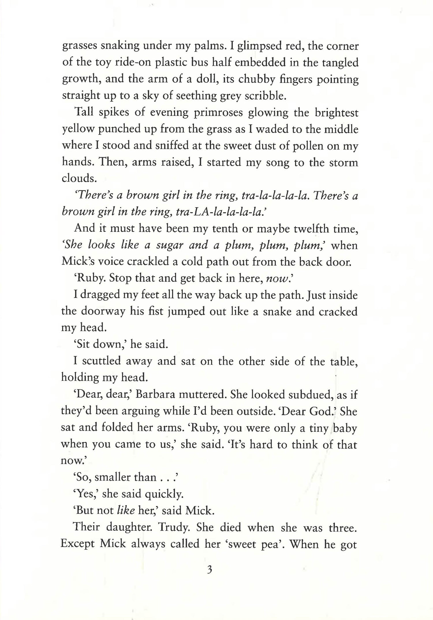 My name is Ruby. I live with Barbara and Mick. They're not my real parents, but they tell me what to do, and what to say. I'm supposed to say that the bruises on my arms and the black eye came from falling down the stairs.