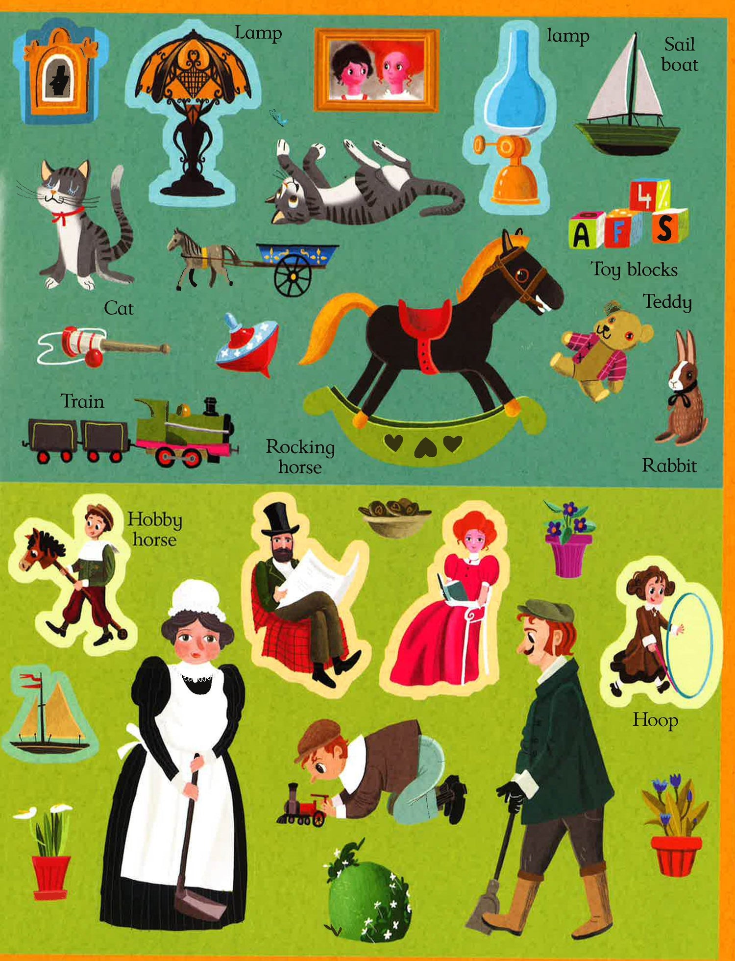 Enter this beautiful Victorian doll's house, meet the family that lives there, and use the stickers at the back of the book to arrange furniture, pictures, toys, playful cats, clothes, and characters.