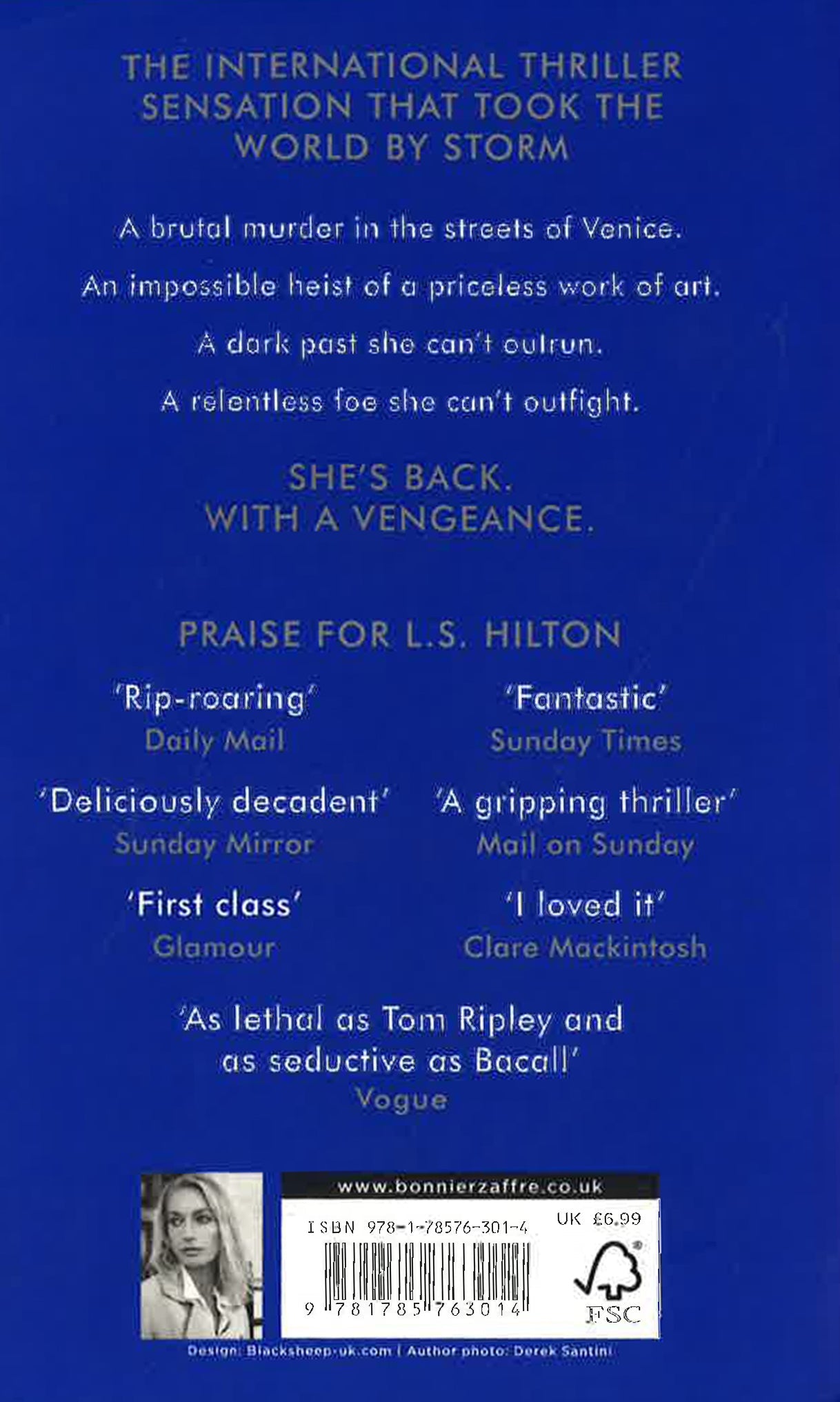 'Fantastically good fun - sharp, sexy and intelligent . . . Something of a masterpiece' Sunday Mirror 'Like a ritzy 50 Shades meets The Da Vinci Code. It's got sex, shopping, a few Old Masters and plenty of murder - what more could you want?' Independent 'Not to Miss!' Marie Claire 'Even more dangerous, shocking and provocative than its predecessor: A book that begs to be devoured in one sitting!' Reader's Digest THE GLOBAL THRILLER PHENOMENON Judith Rashleigh has made it. Living in luxury amidst the splendours of Venice, she's finally enjoying the life she killed for. But someone knows what Judith's done. Judith can only save herself by finding a priceless painting - unfortunately, one that she's convinced doesn't even exist. And she's not the only one seeking it. This time, Judith isn't in control. Outflanked and out-thought, outrun and outgunned, she faces an enemy more ruthless and more powerful than she ever imagined. And if she doesn't win, she dies. PRAISE FOR MAESTRA 'Funny and clever, entertaining and well written . . . Destined for the bestseller charts' The Times 'A first-class thriller . . . Read it now before the entire world does.' Glamour 'A rip-roaring read . . . Sharp and extremely well written' Daily Mail 'Brimming with scandal, intrigue and mystery, this is a book that everyone is talking about' Heat 'Deliciously decadent . . . a glamorous and racy adventure' Sunday Mirror 'Set in a world of oligarchs, Mafiosi and dodgy art dealers, it also has in Judith Rashleigh a heroine you'll either love or loathe, at least two jaw-on-the-floor moments and sex scenes that would make Christian Grey blush' Red magazine 'A psychological thriller set on the French Riviera, rather like Patricia Highsmith crossed with Gone Girl, unsurprisingly, there's a film deal in the works' Harpers Bazaar - '10 Best Books for 2016'