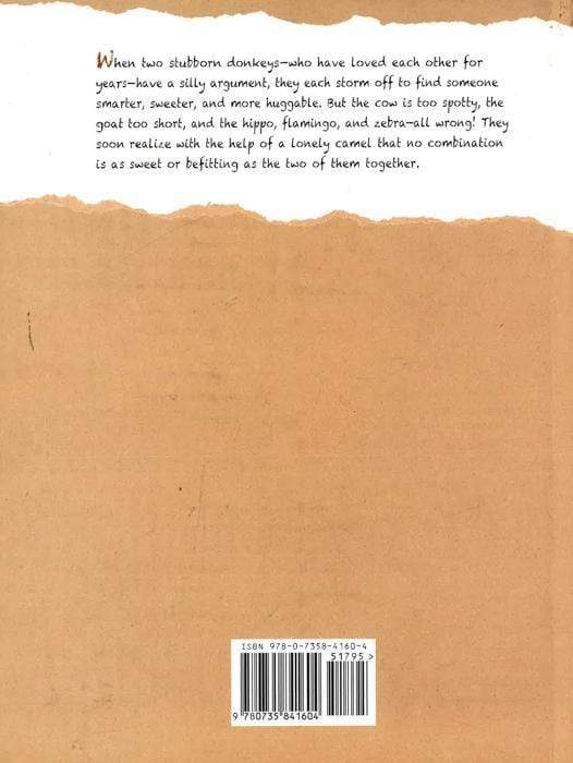 When two stubborn donkeys--who have been together for years--have a silly argument, they each storm off to find someone smarter, sweeter, and huggable. But the cow is too spotty, the goat too short, and the hippo, flamingo, and zebra--all wrong! They soon realize with the help of a lonely camel that no combination is as sweet or befitting as the two of them together.