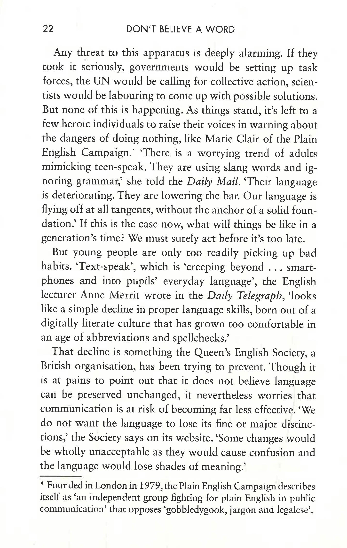 Taking us on a mind-boggling journey through the science of language, linguist David Shariatmadari uncovers the truth about what we do with words, exploding nine widely-held myths about language while introducing us to some of the fundamental insights of modern linguistics.