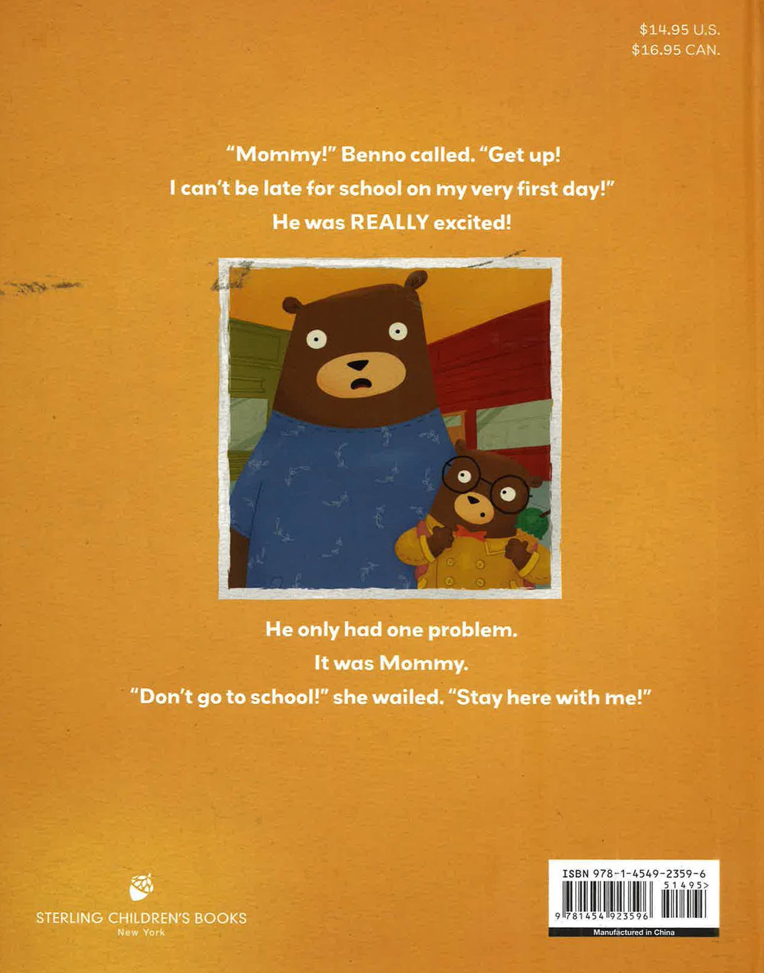 Benno is really excited about his first day at school. But there's one problem: MOMMY! A laugh-out-loud twist on a familiar theme. What can a little bear do when he's all ready for his first day of school--but his mother isn't? "DON"T GO TO SCHOOL!" she wails. "STAY HERE WITH ME!" Mommy sulks, she's shy, she even throws a tantrum. Can Benno convince her that everything's okay? He comes up with an ingenious idea to help her adjust--one that many a mom and dad will recognize. This humorous story will reassure and delight nervous children, while parents feeling a little sad to see their babies grow up and march off to school will empathize with Mom!