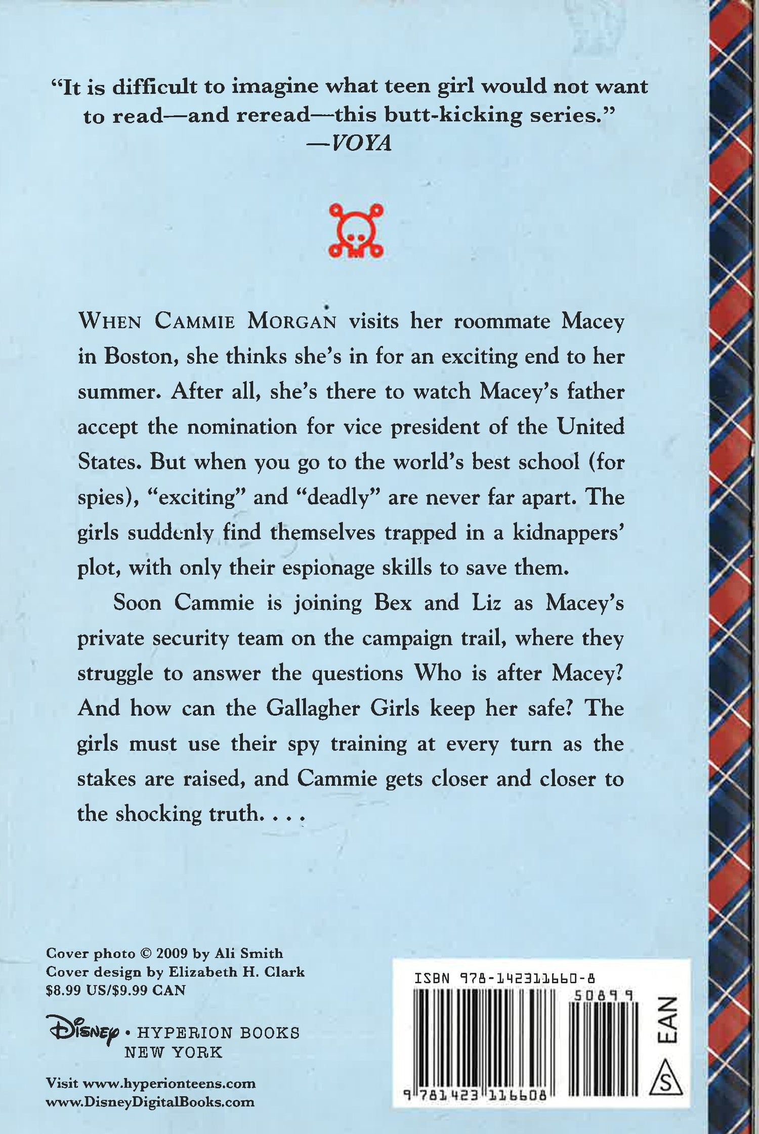 When Cammie "The Chameleon" Morgan visits her roommate Macey in Boston, she thinks she's in for an exciting end to her summer break. After all, she's there to watch Macey's father accept the nomination for vice president of the United States. But when you go to the world's best school (for spies), "exciting" and "deadly" are never far apart. Cammie and Macey soon find themselves trapped in a kidnappers' plot, with only their espionage skills to save them. As her junior year begins, Cammie can't shake the memory of what happened in Boston, and even the Gallagher Academy for Exceptional Young Women doesn't feel like the safe haven it once did. Shocking secrets and old flames seem to lurk around every one of the mansion's corners as Cammie and her friends struggle to answer the questions, Who is after Macey? And how can the Gallagher Girls keep her safe? Soon Cammie is joining Bex and Liz as Macey's private security team on the campaign trail. The girls must use their spy training at every turn as the stakes are raised, and Cammie gets closer and closer to the shocking truth..