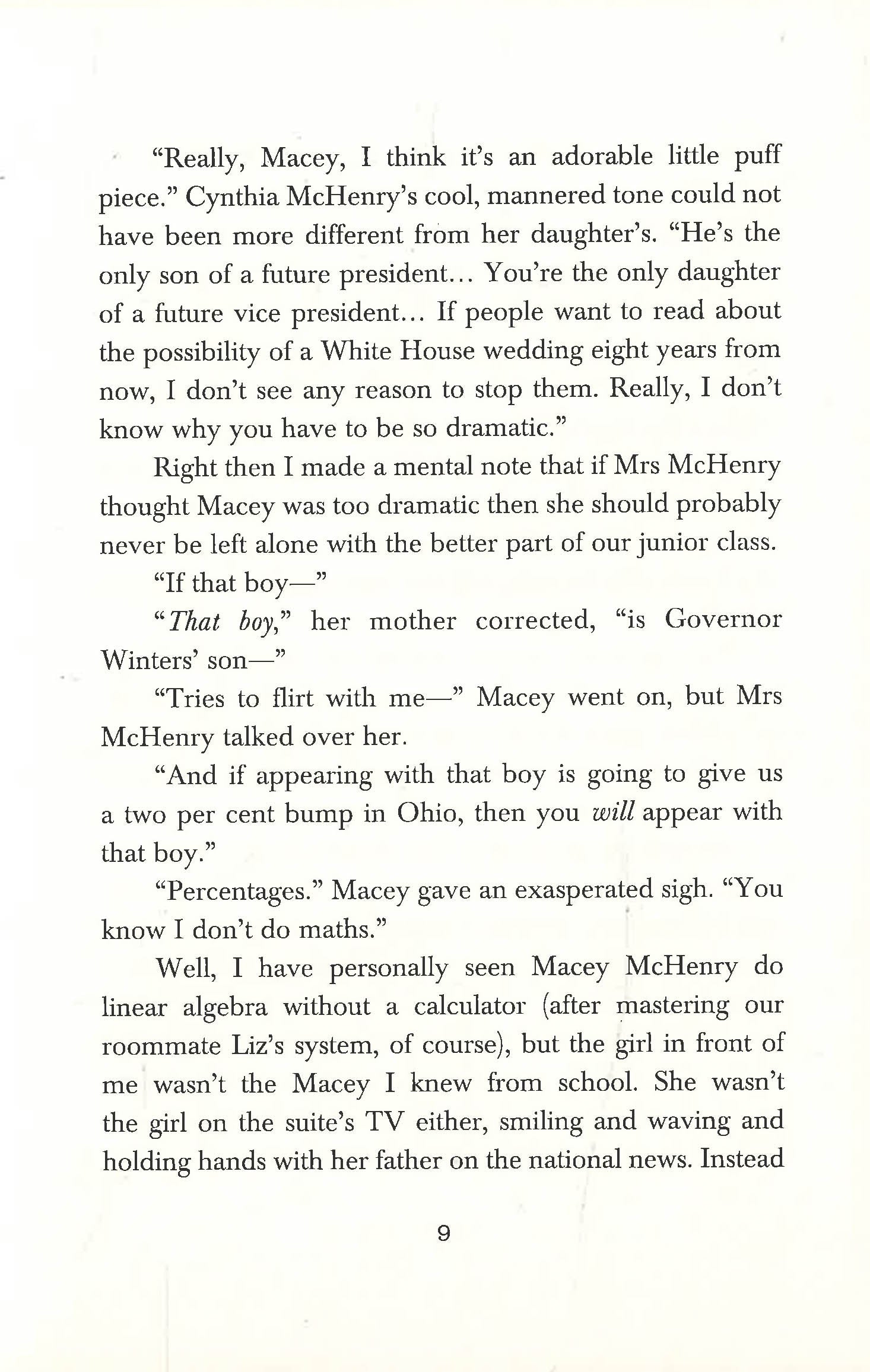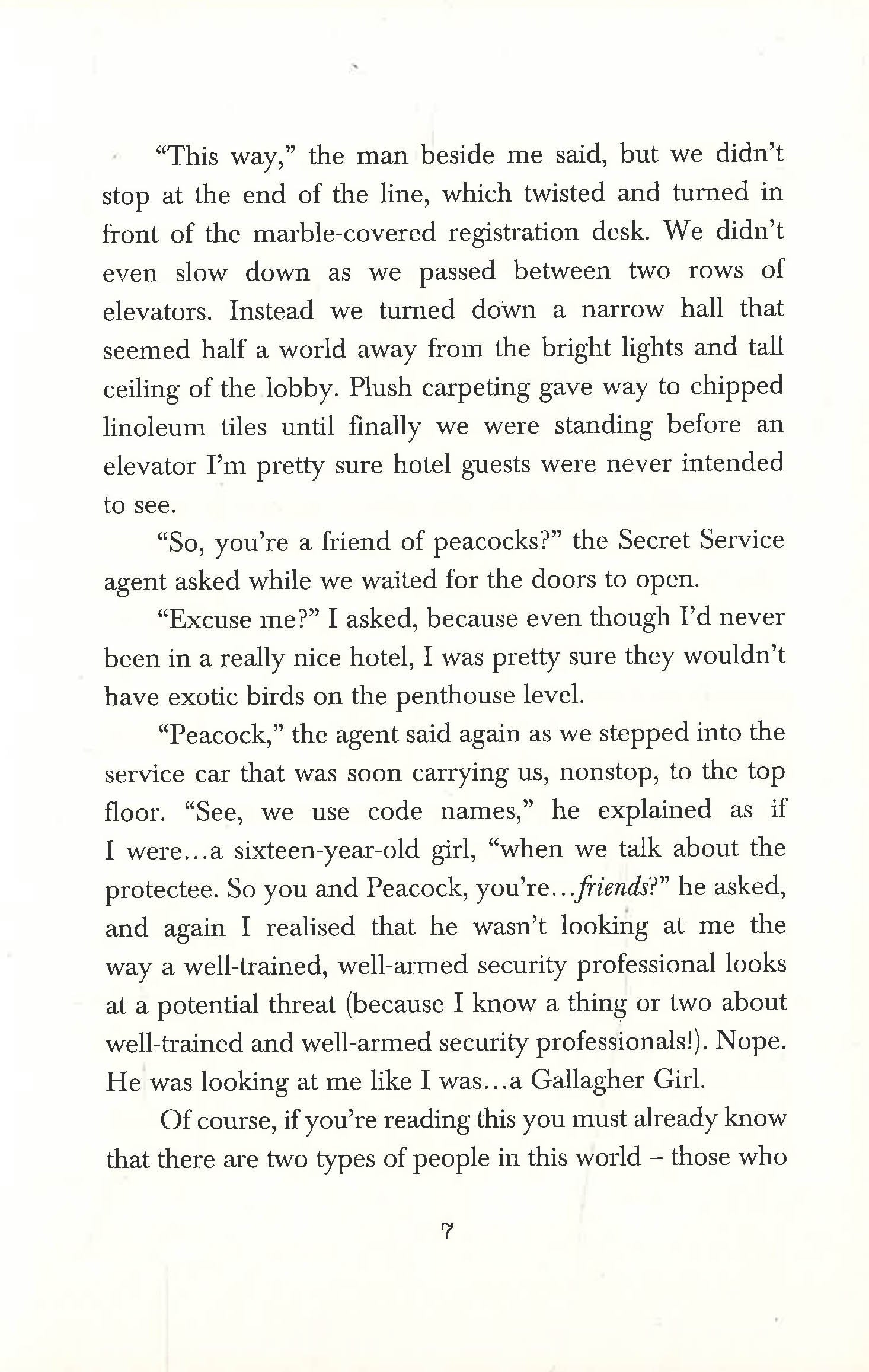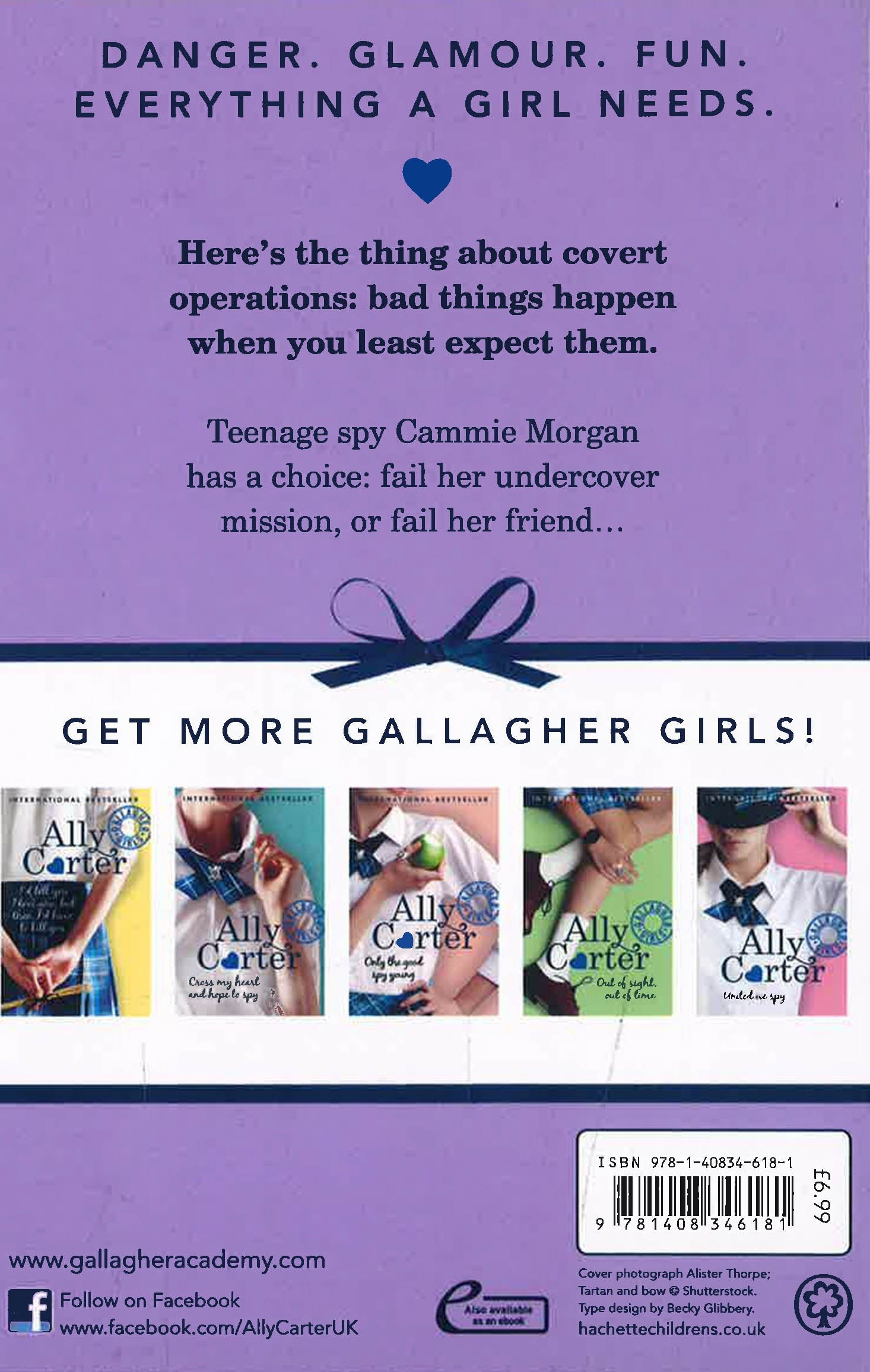 Here's the thing about covert operations: the really bad things always happen when you least expect them. The enemies don't give you a heads-up. And they never let you stop to put on comfortable shoes.A spy-in-training, Cammie Morgan has a cover for every occasion. But what happens when she is forced to lose her cover to save her best friend, Macey? Cammie and her friends are determined to hunt down the group that threatens to tear their secret sisterhood apart. This time it's personal.