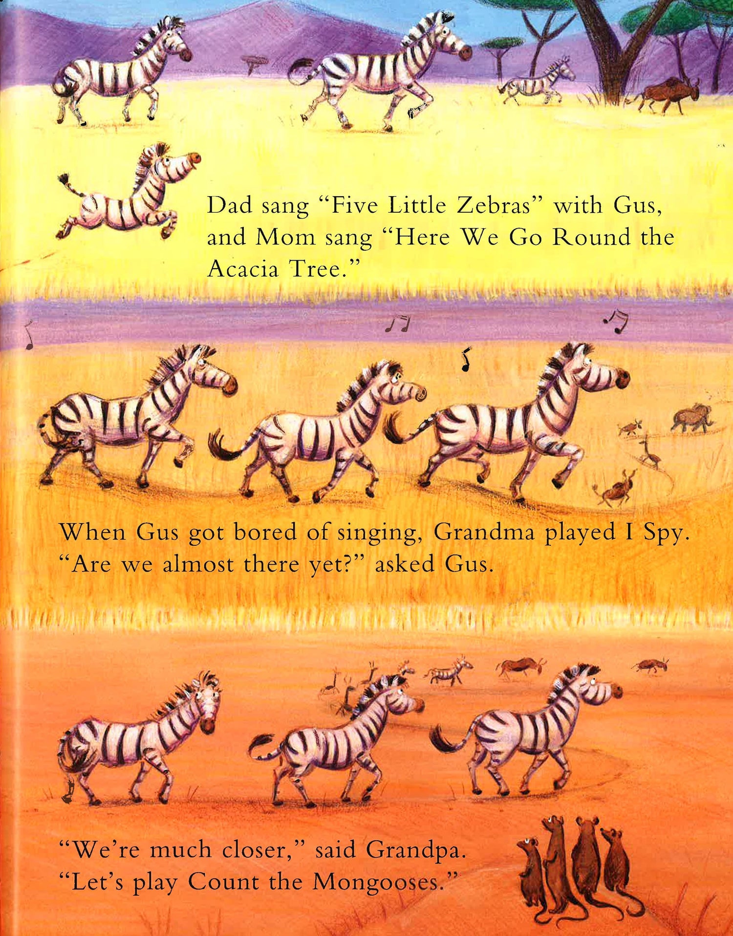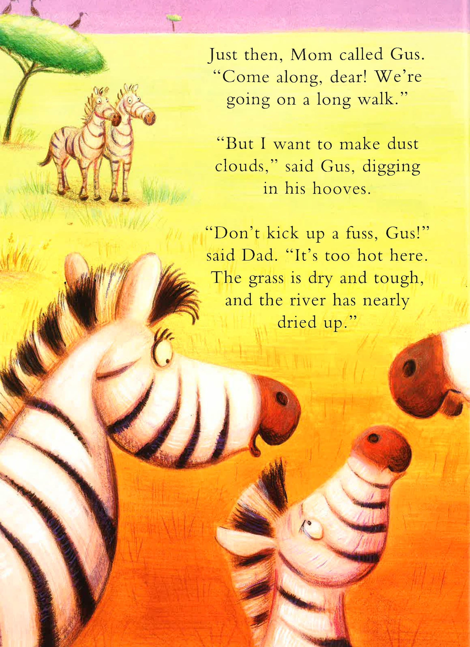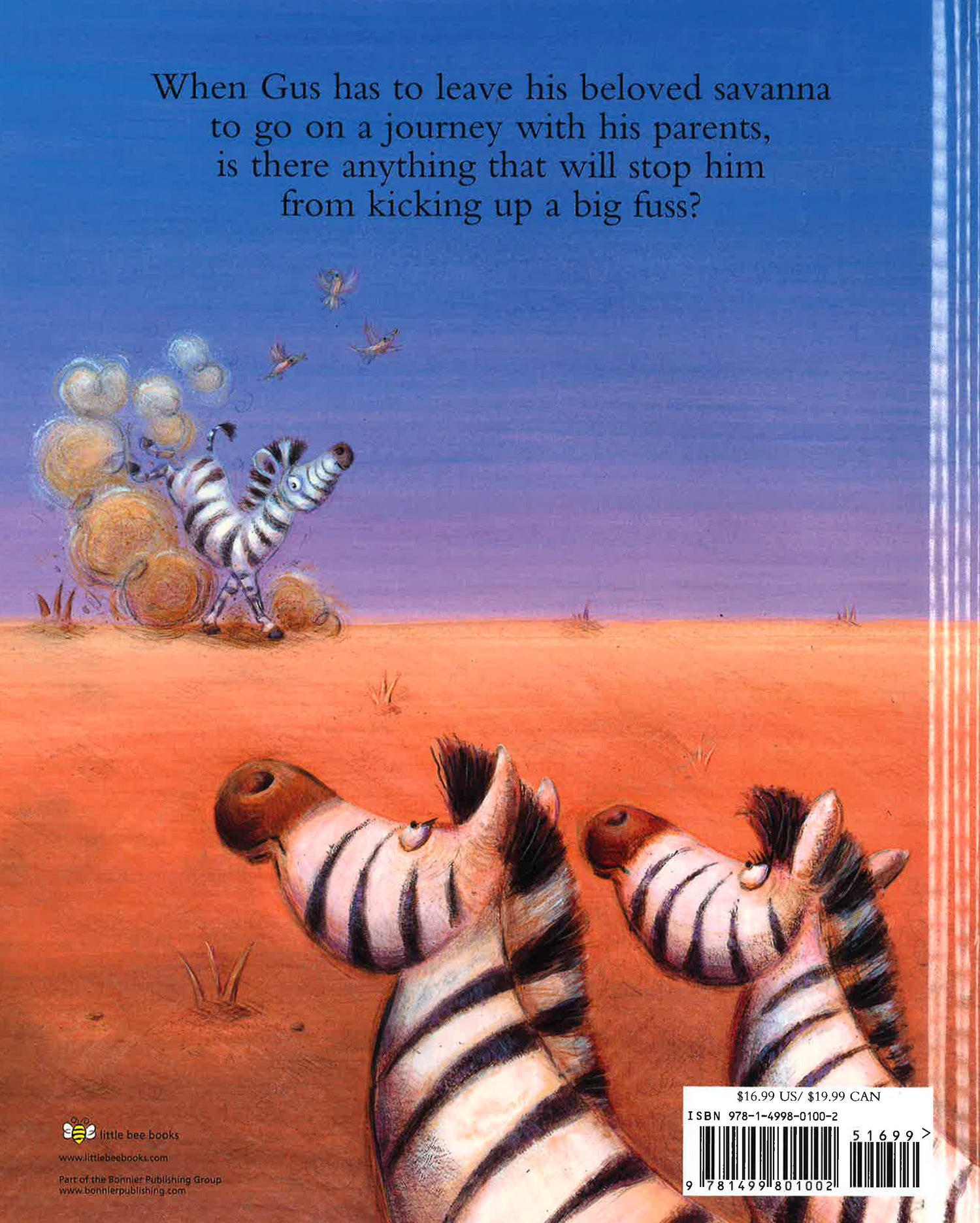 Find out what all the fuss is about in this funny picture book about a feisty zebra named Gus. Gus does NOT want to go on a long journey with his family. He just wants to stay home in the African savannah and play. So along the way he kicks up a BIG fuss, which doesn't make the trip any better. But with a little patience, Gus soon finds that sometimes you have the most fun when you least expect it.
