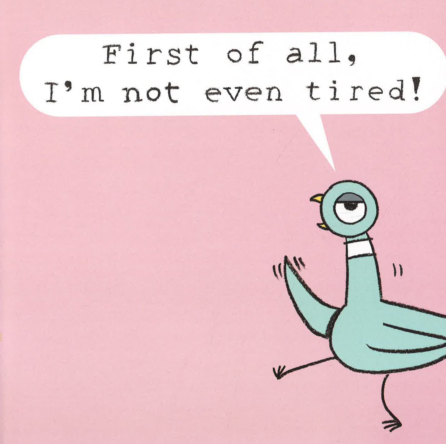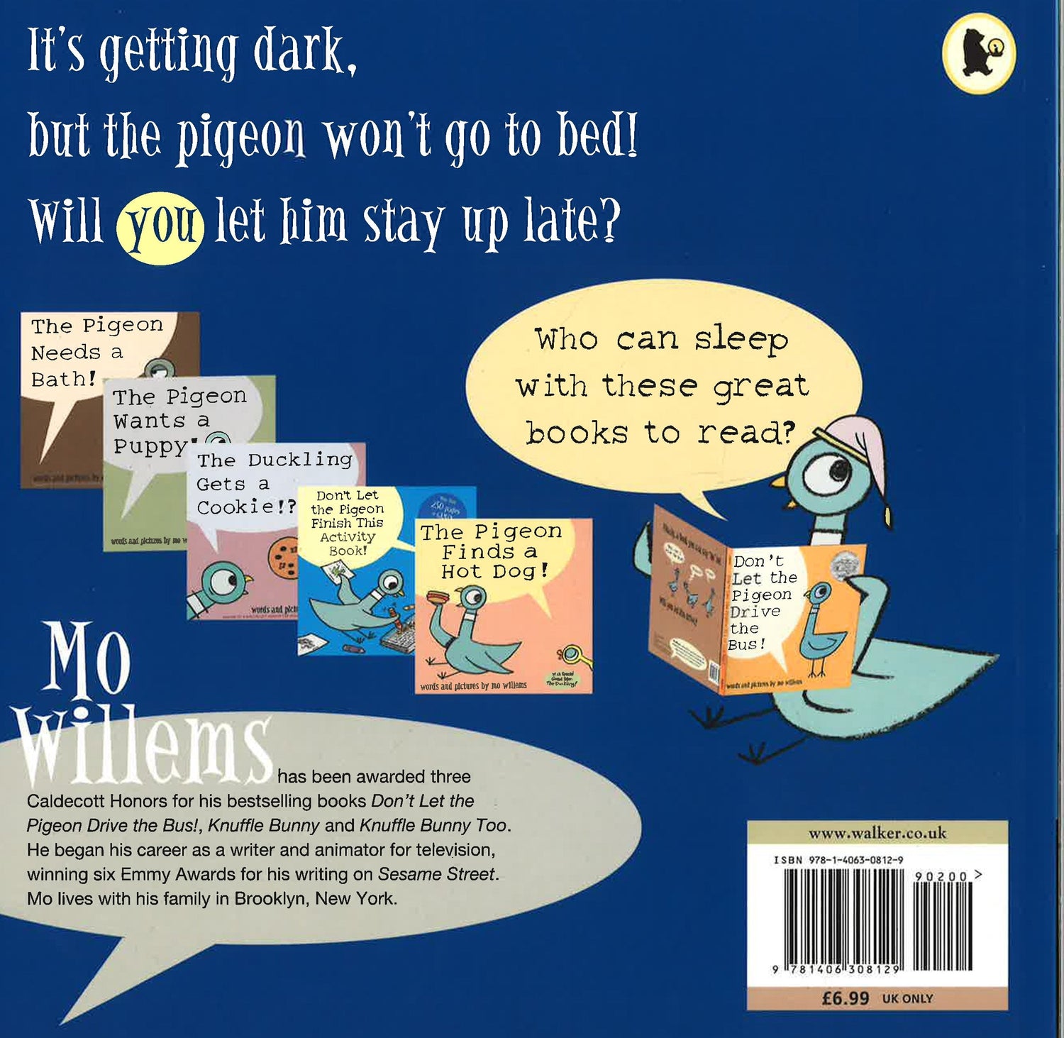 A hilarious read-aloud story for bedtime, featuring everyone's favourite pesky, pestering pigeon! In this hilarious, interactive bedtime read in Mo Willems' award-winning Pigeon series, it's getting late and the bus driver is going to brush his teeth and get ready for bed. Will you do him a favour while he is gone - don't let the pigeon stay up late! But the pigeon is wide awake: he isn't even tired - in fact he's in the mood for a hot-dog party! So will YOU let him stay up late?