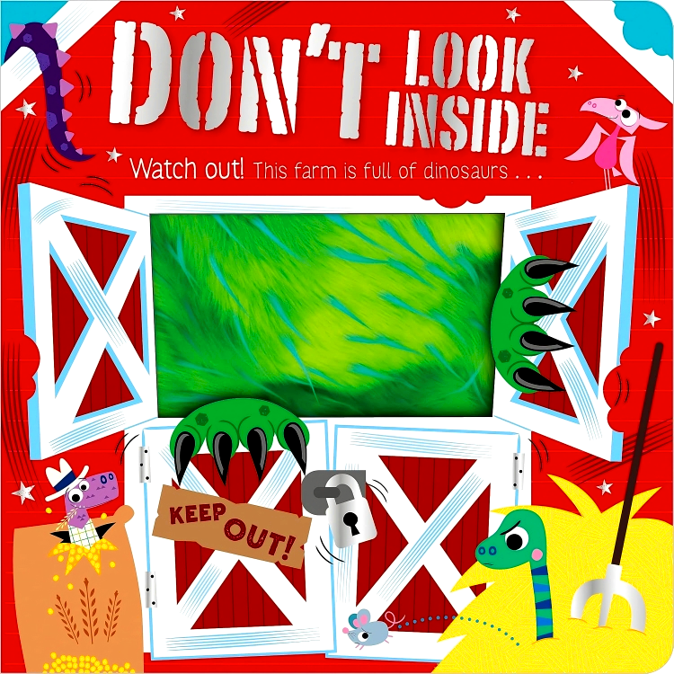 The dinosaurs are dressing up as animals and taking over the farm! Have fun lifting the flaps and touching the dionosaurs in each scene...if you dare!
