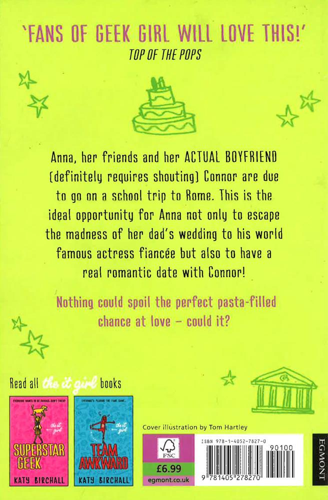 The brilliant sequel to The It Girl. Hilariously funny and deliciously romantic - perfect for fans of Geek Girl and Louise Rennison. Romance is in the air! Preparations for the Wedding of the Century between Anna's dad and super famous actress Helena Montaine is in full swing (all Anna needs to do is escape having to wear the biggest meringue of a bridesmaid dress that EVER existed.) And not only that but Anna, her friends and her ACTUAL BOYFRIEND (definitely requires shouting), Connor, are about to go on a school trip in romantic Rome. So as long as Anna can avoid doing something like falling face first in the Trevi Fountain, nothing could spoil this perfect pasta-filled moment. Could it? Praise for The It Girl: Superstar Geek: 'Fans of Geek Girl will love this!' - Top of the Pops `Anna made me laugh throughout the book . . . she's a lighthearted teen heroine for the John Green generation' - Wondrous Reads Katy Birchall is the author of the side-splittingly funny The It Girl: Superstar Geek, The It Girl: Team Awkward and its eagerly-awaited sequel The It Girl: Don't Tell the Bridesmaid. Katy won the 24/7 Theatre Festival Award for Most Promising new Comedy Writer with her very serious play about a ninja monkey at a dinner party. Her pet Labradors are the loves of her life, she is mildly obsessed with Jane Austen and one day she hopes to wake up as an elf in The Lord of the Rings. Katy lives in Brixton, London.