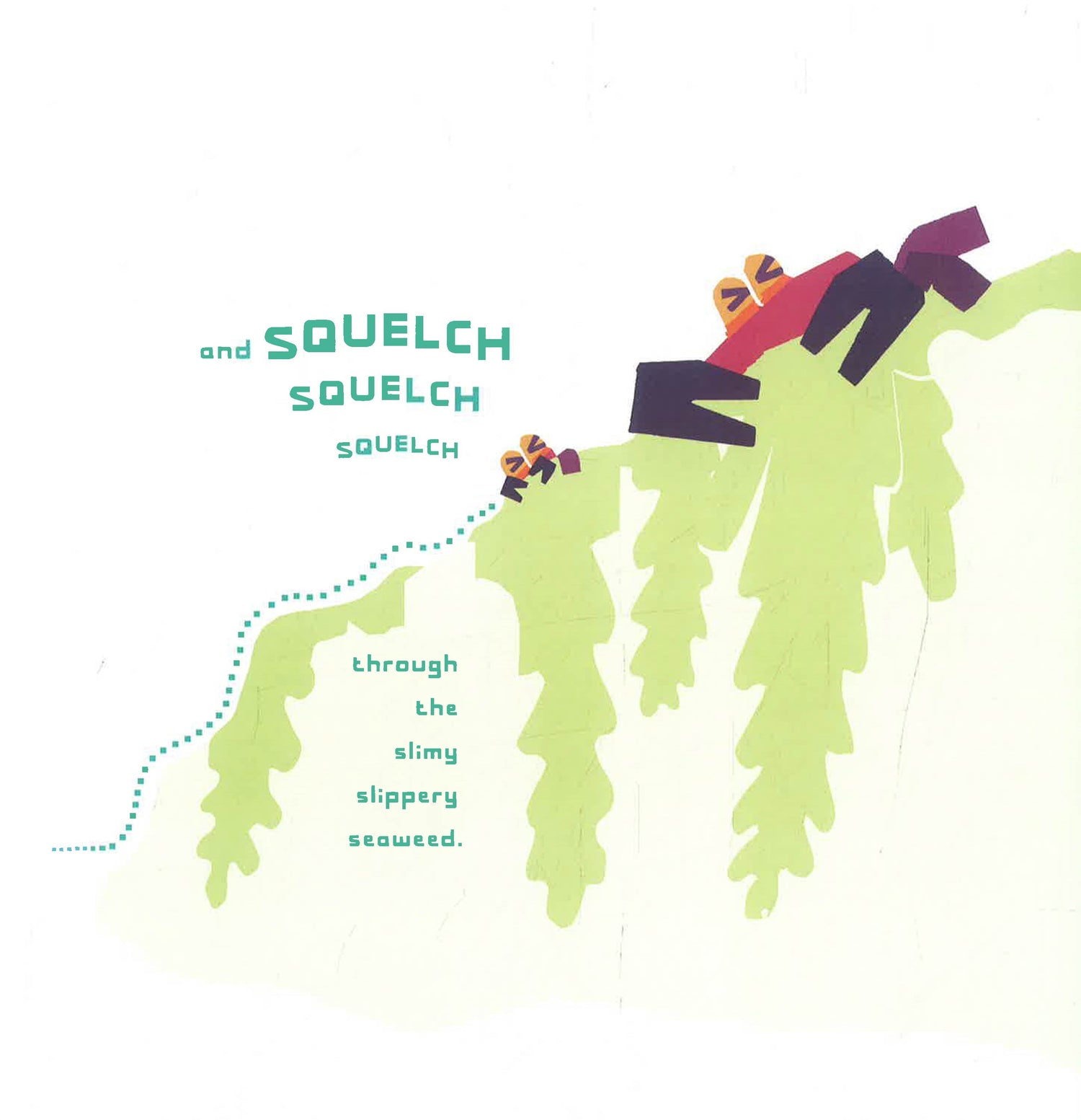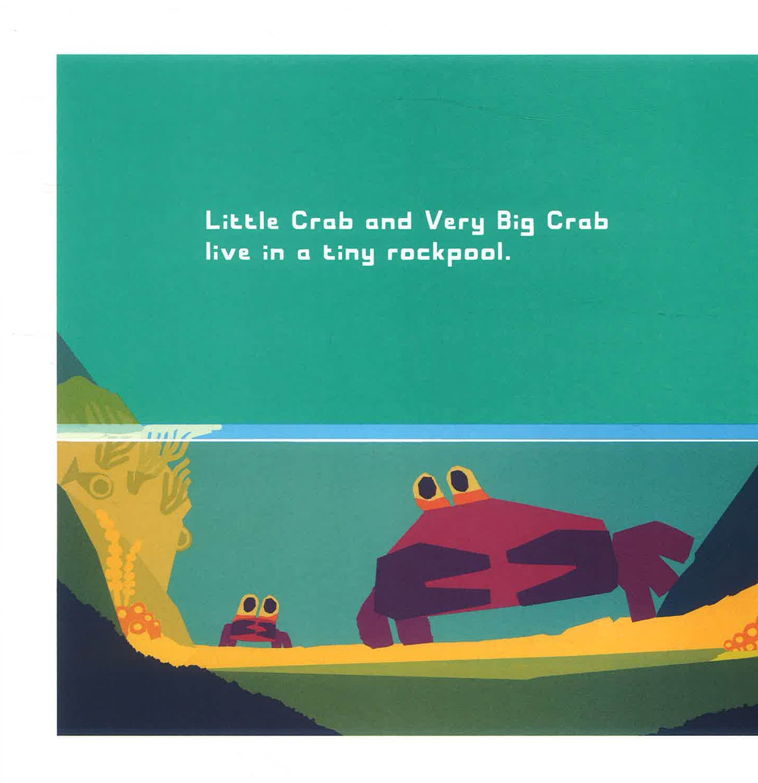 In the rockpool above the sea, live two crabs: Big Crab and Little Crab. Today, they're going for a dip in the sea. "This is going to be so great!" says Little Crab. But then Little Crab catches a first glimpse of the water... Oh. The waves! They're ENORMOUS. "JEEPERS!" Will Little Crab be brave enough to go in?
